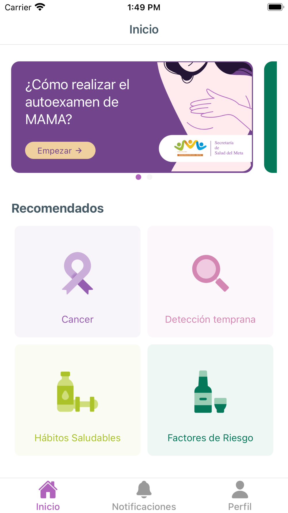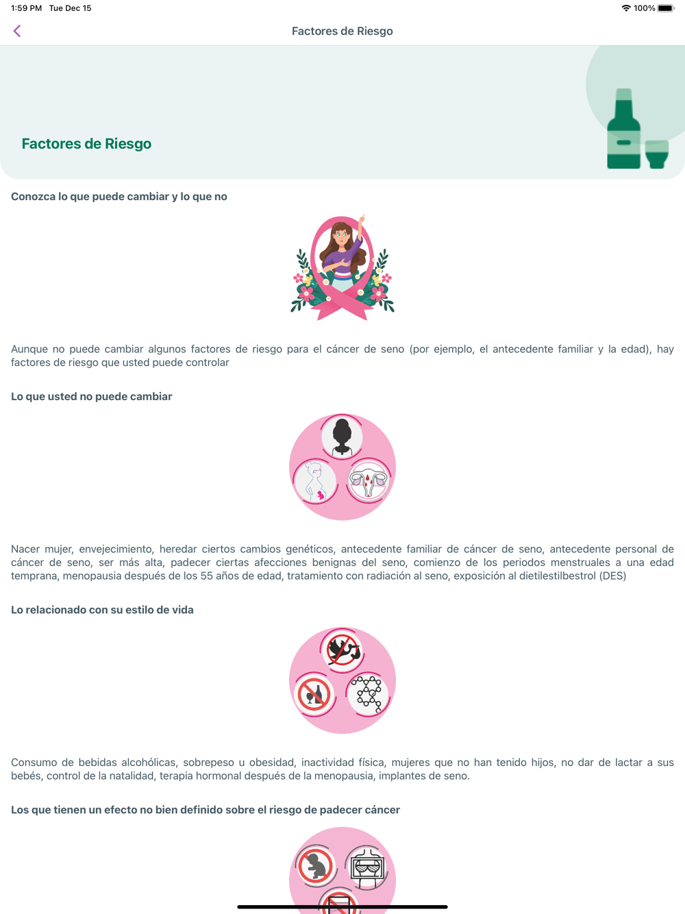 la aplicación Con-tacto se presenta como una estrategia de prevención, información y difusión de los distintos mecanismos adoptados por la comunidad médica internacional para el seguimiento y detección temprana del cáncer de mama y cuello uterino.