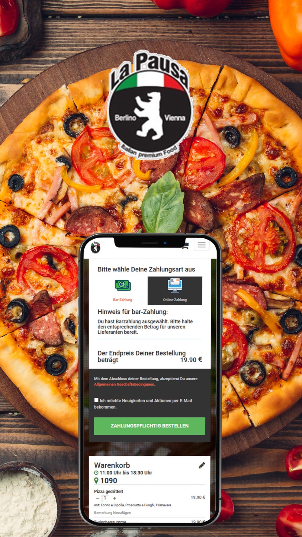 Bestelle jetzt deine Lieblingspizza über unsere neue App direkt zu dir nach Hause und genieße dein Essen in vertrauter Umgebung. Oder hole dir deine 1 Meter Pizza ganz einfach bei uns im LaPausa Wien ab!