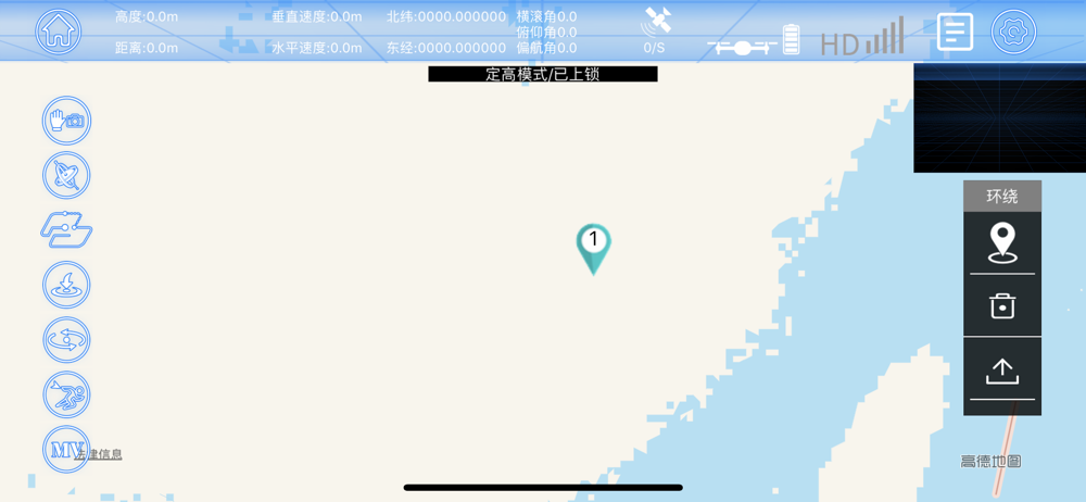 1.实时预览飞行器上相机回传图像,控制相机拍照、录像。