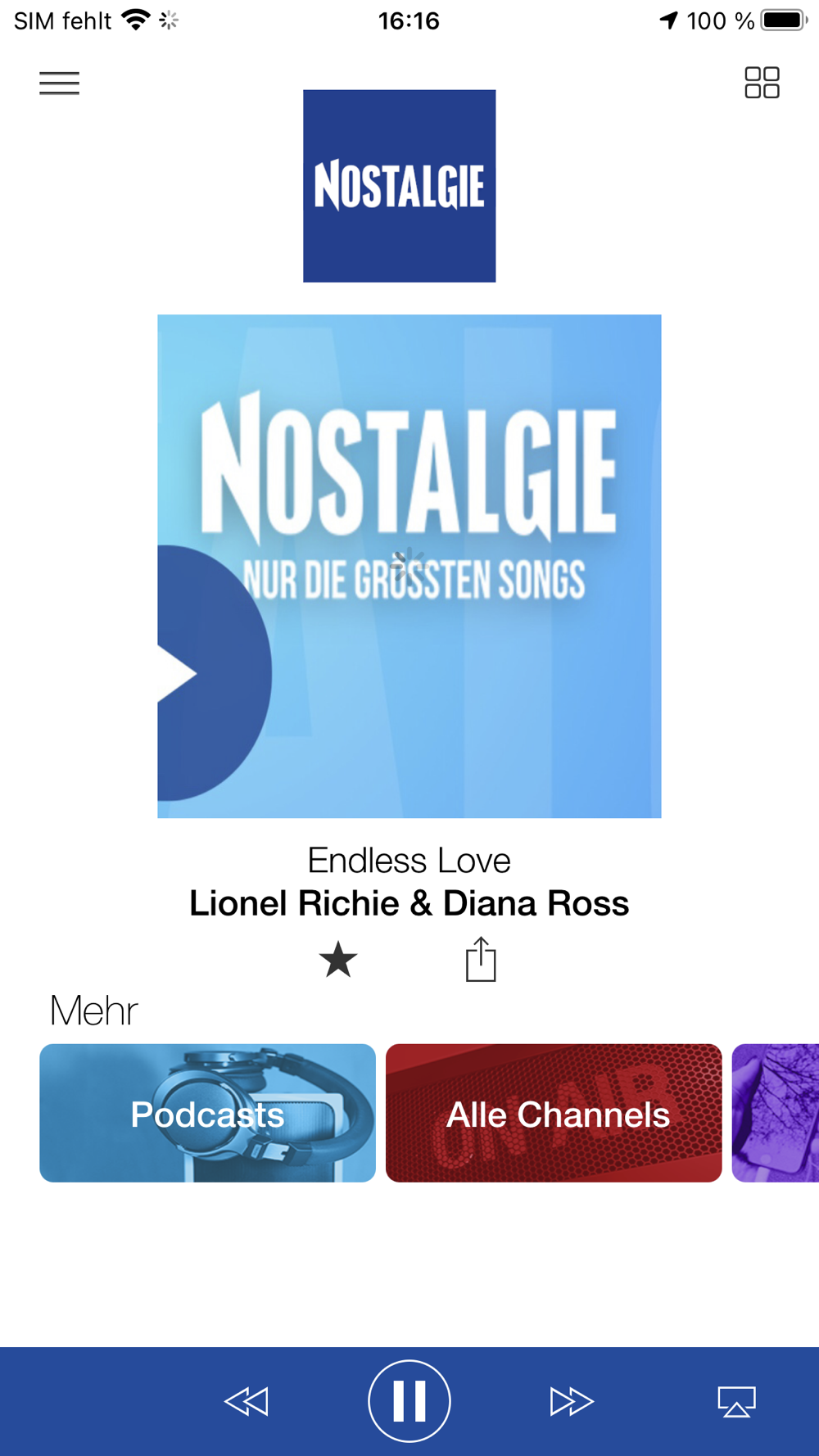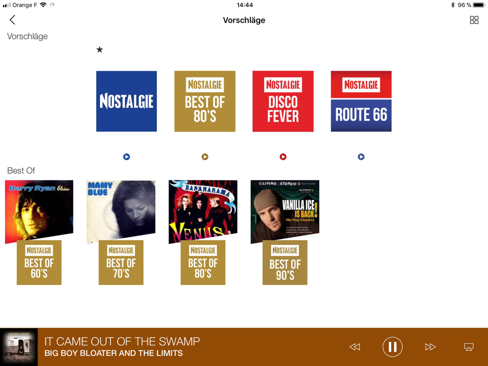 Wer Lust auf die größten Songs der 80er Jahre hat - perfekt kombiniert mit denen aus den 70ern und den 90ern - ist bei NOSTALGIE genau richtig. Ob Blues, Rock oder Disco Fever mit unseren Streams ist ein Ohrwurm garantiert! NOSTALGIE ist die Nr.1 Musik-App für "Die größten Songs"!