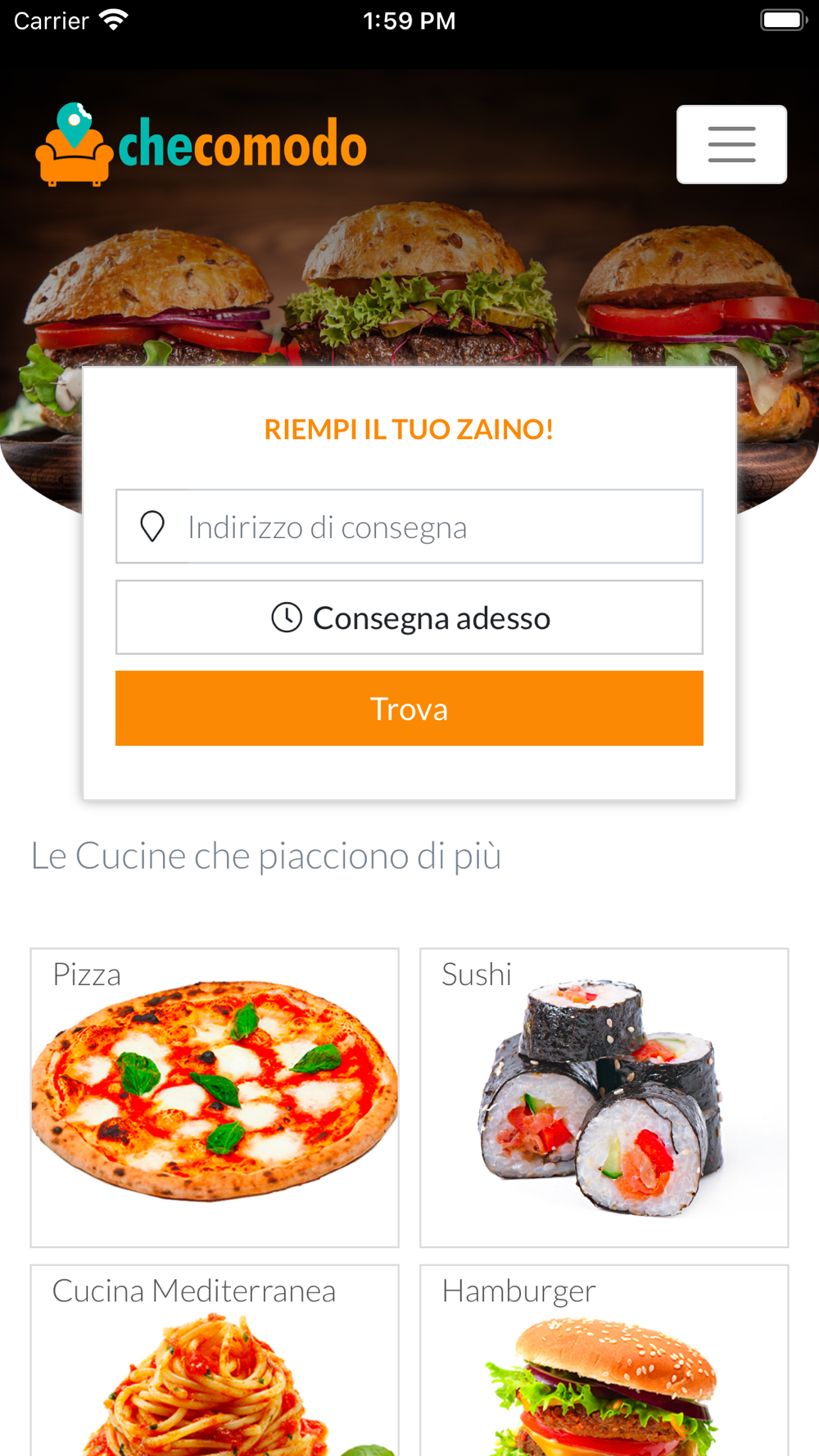 Ordinare qualsiasi cibo e ricevilo a casa in pochi minuti. Pizza, sushi, panini, hamburger... qualsiasi prodotto dal tuo ristorante preferito direttamente a casa tua.