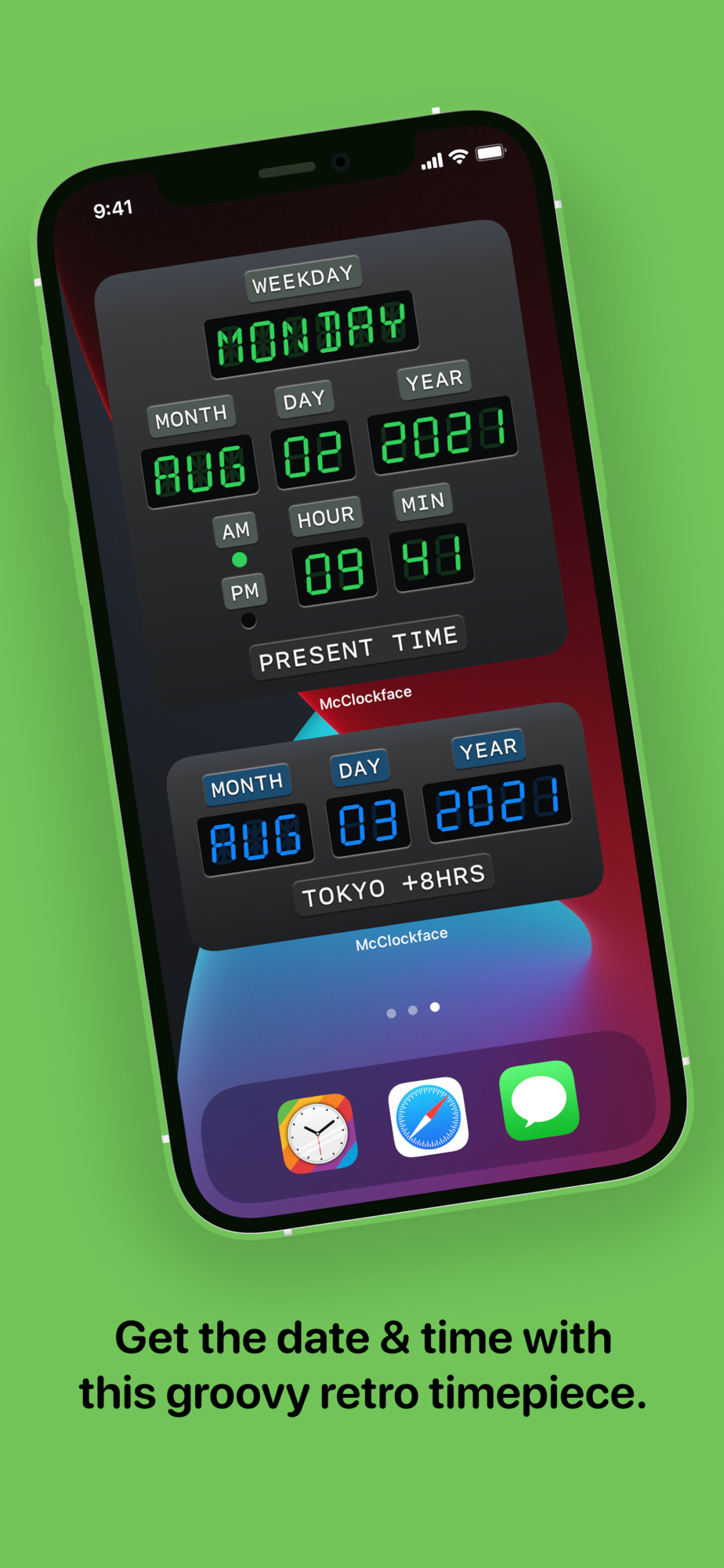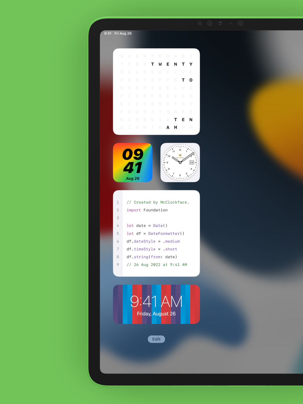 McClockface provides a collection of playful widget designs that display the date, time, and other chronographic info at a glance, with options to customize colors and time zones widget-by-widget.