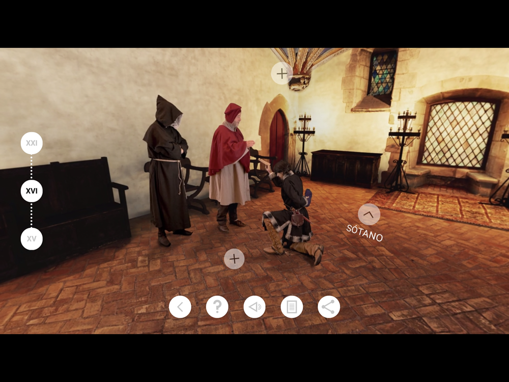 The virtual reconstruction included in this app aims to show the historical evolution of the "Casa del Cordón" palace of Vitoria-Gasteiz (Basque Country, Spain), in an immersive and unique experience that shows 15th and 16th century architecture and scenes with different characters from history in a realistic way.