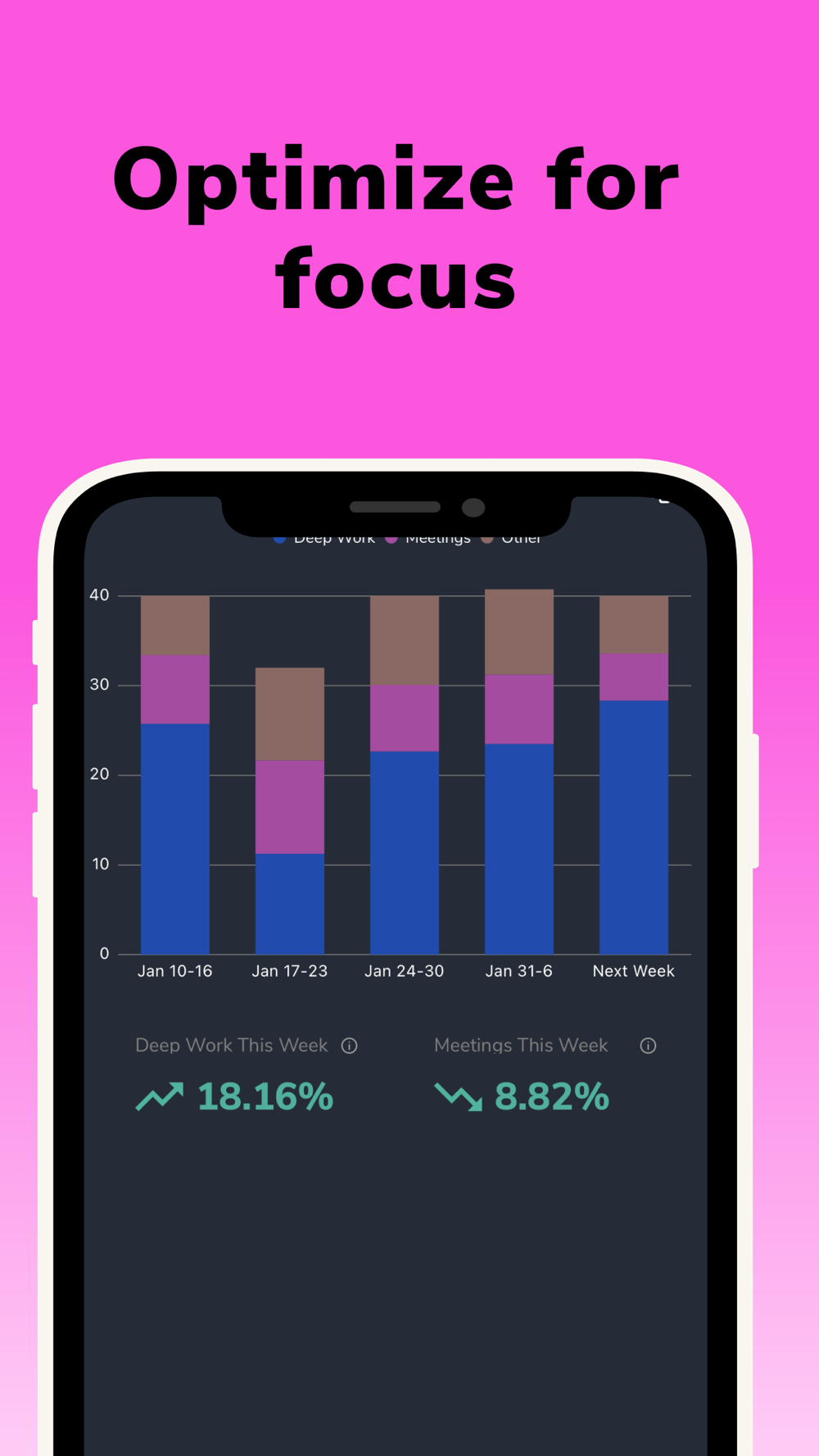 It will also evaluate your schedule week-by-week to show you where your time is being spent over time. With this understanding, Artium Focus will help you reprioritize how you spend your valuable time each day.