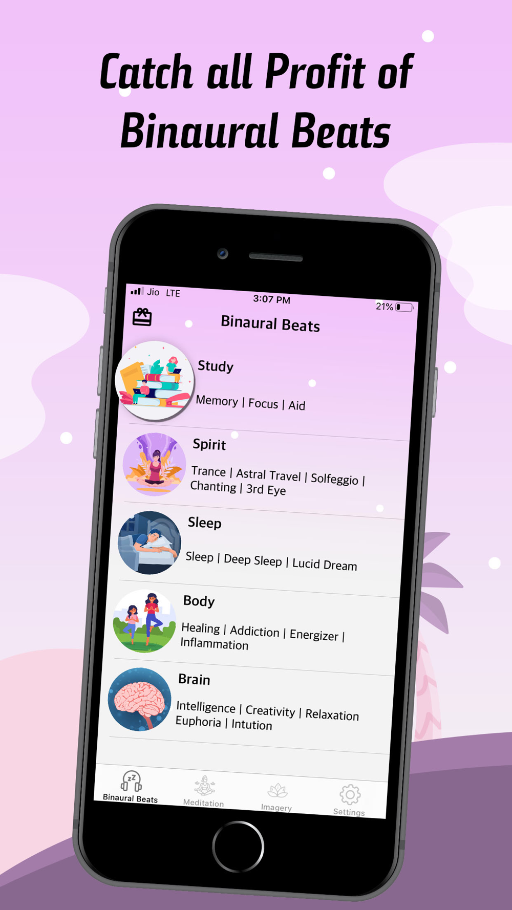 - Binaural Beats Meditation are meant to be played with headphones, use them for a better experience.