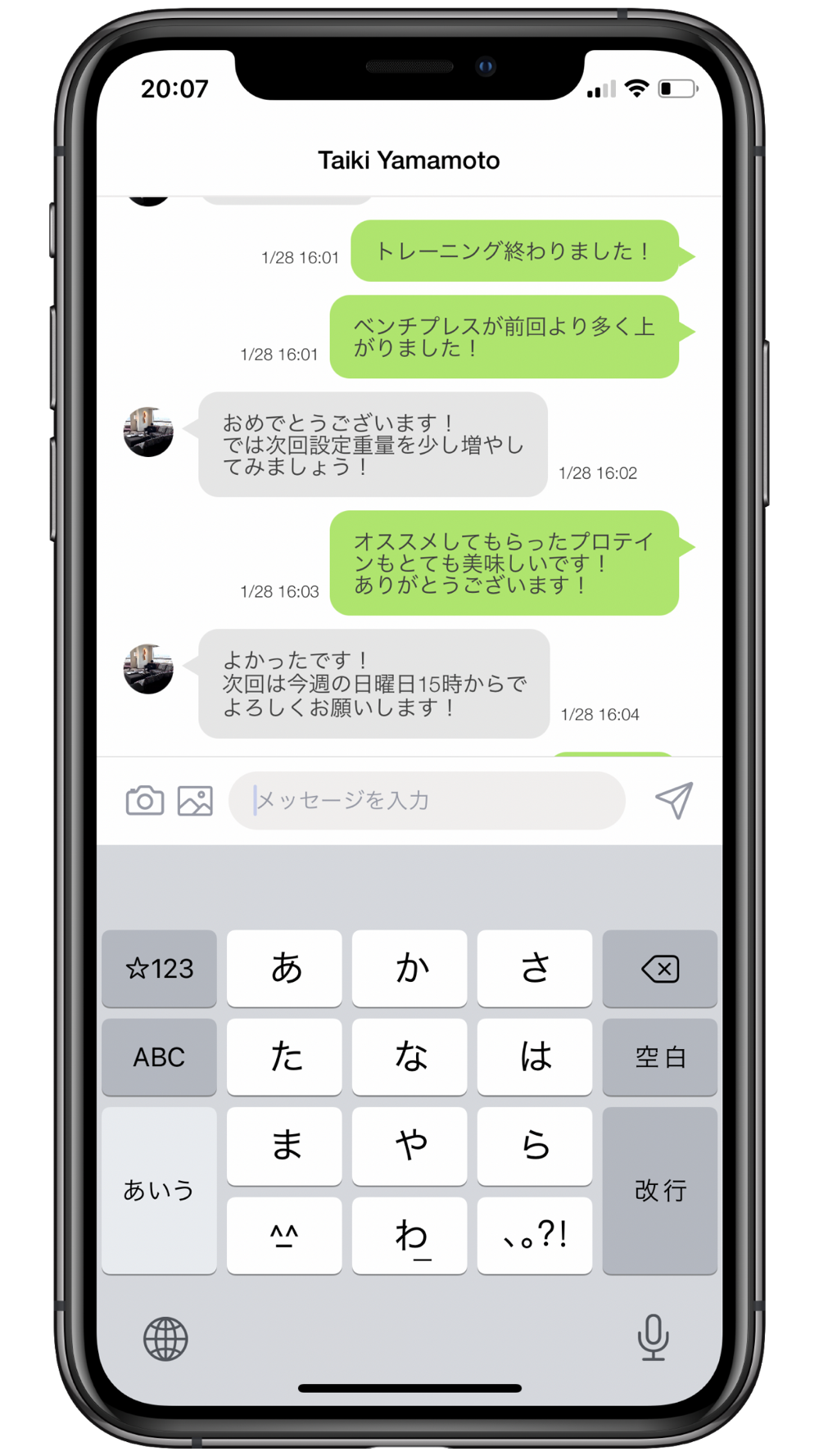 チャット形式のトーク機能でトレーナーにトレーニングや食事に関して質問をし、アドバイスを受けることができます。