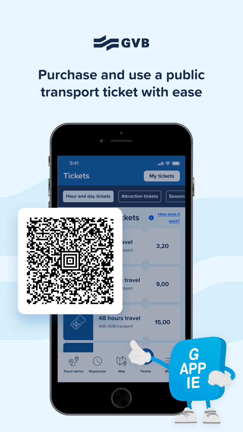 The app for travelling by tram, (night) bus, metro and ferry in Amsterdam and the rest of the Netherlands. Your indispensable travel buddy for frequent travellers or for just a visit. Quickly and easily plan your trip from home to work, a restaurant or the theatre or from Schiphol to your hotel or B&B. Check whether there is a diversion or delay on your route. You always have your favourite line’s up-to-date departure times at your fingertips. And now it’s also possible to purchase a barcode ticket for immediate travel.