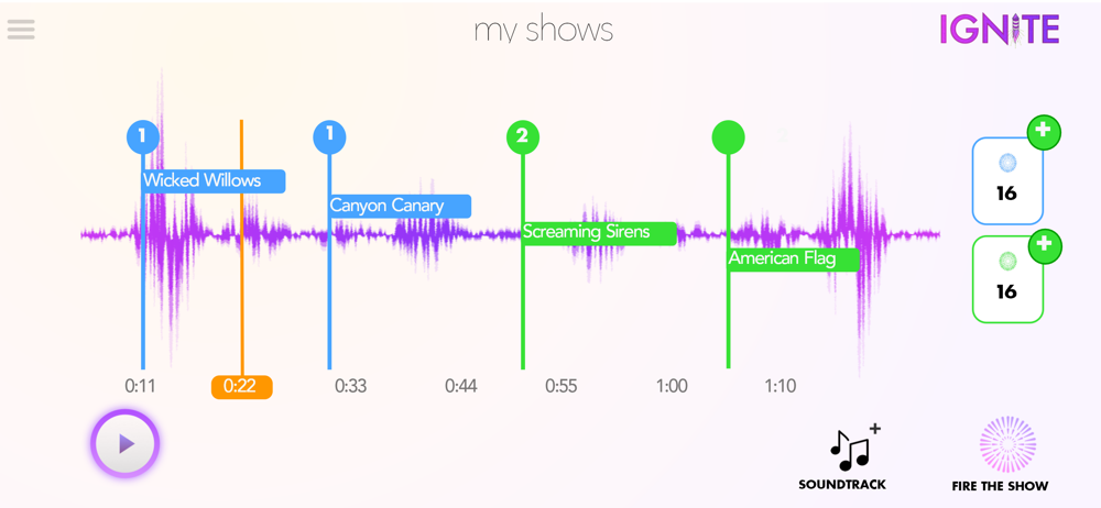 Putting on a big show? We understand the time it takes to research, purchase, sort, and setup your fireworks. With IGNITE, it's all about the preparation. Design your show, calculate the proper timing, layout, and connect your fireworks to the system in advance to make the execution of the show flawless and stress-free.