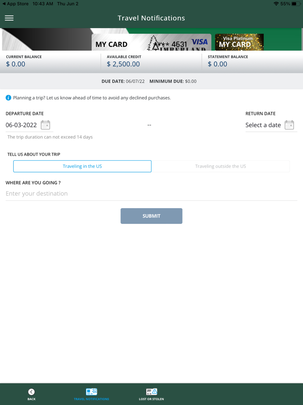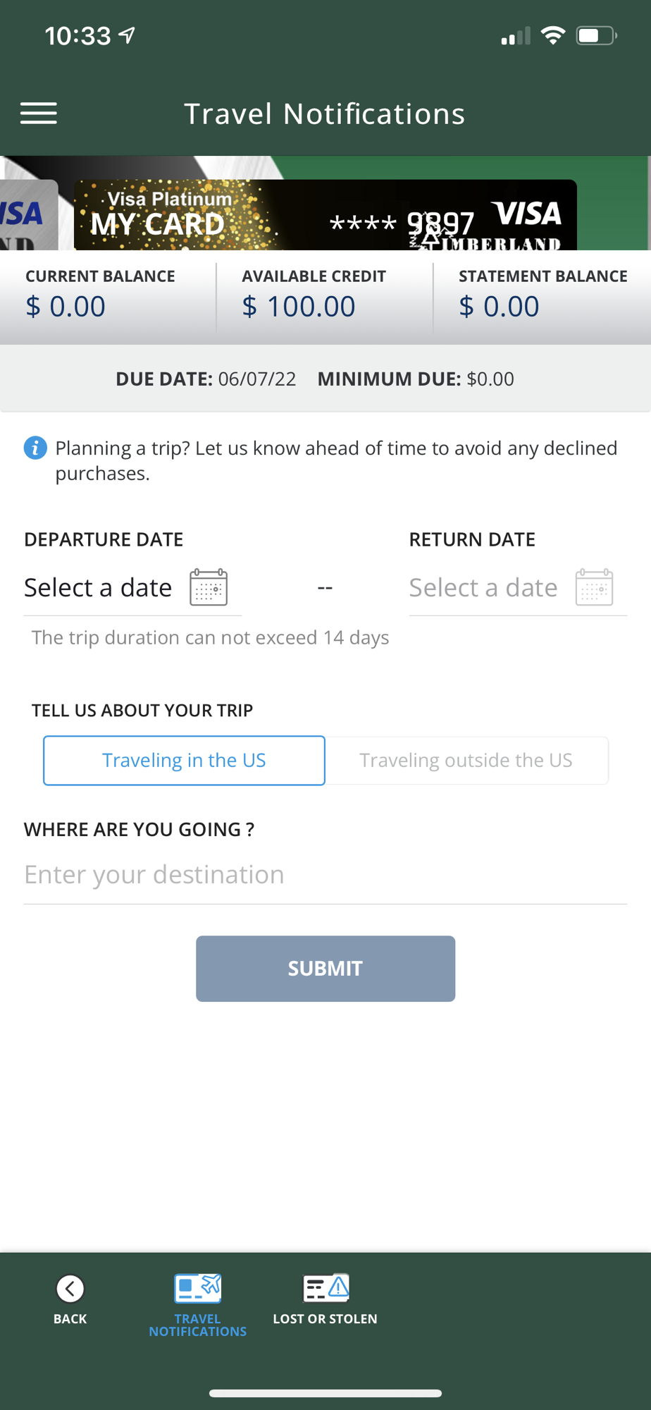 • Set travel notifications.