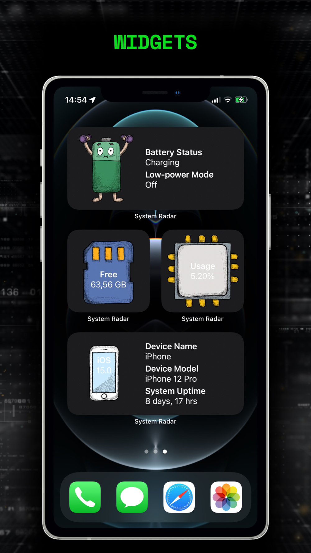 System Radar provides real-time information about your device, helps track data, and monitors mobile usage.