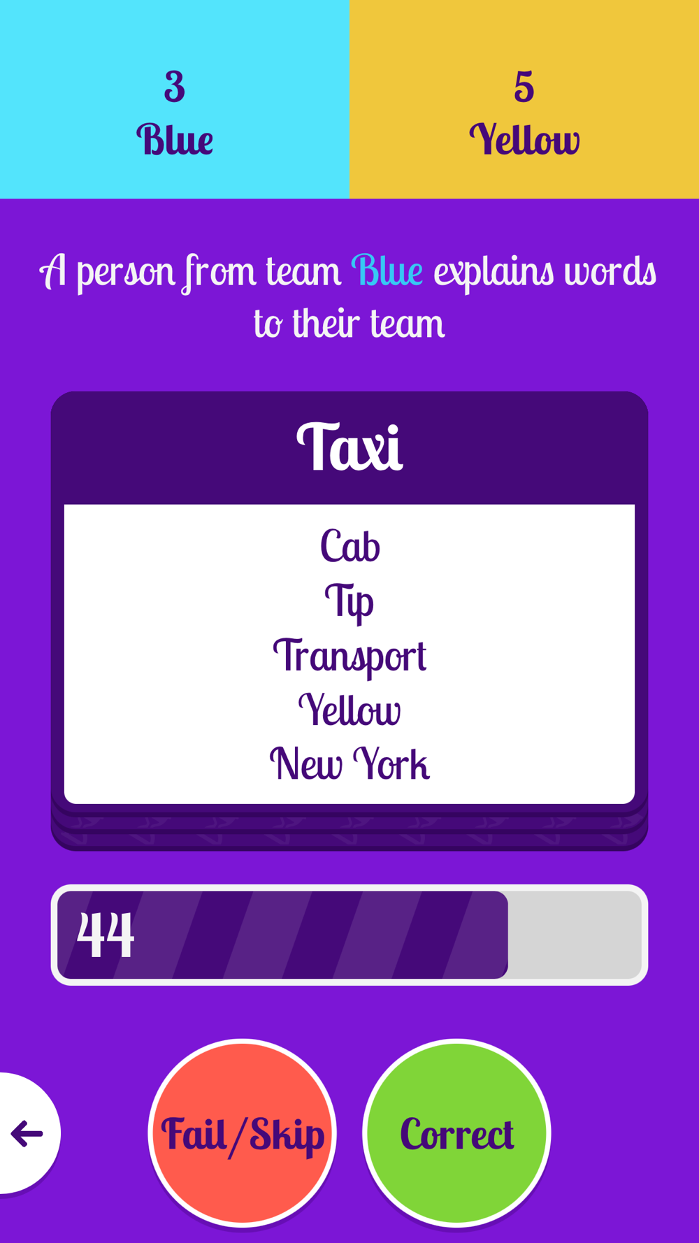 2. Describe a word from the card to your team, avoiding listed forbidden words.