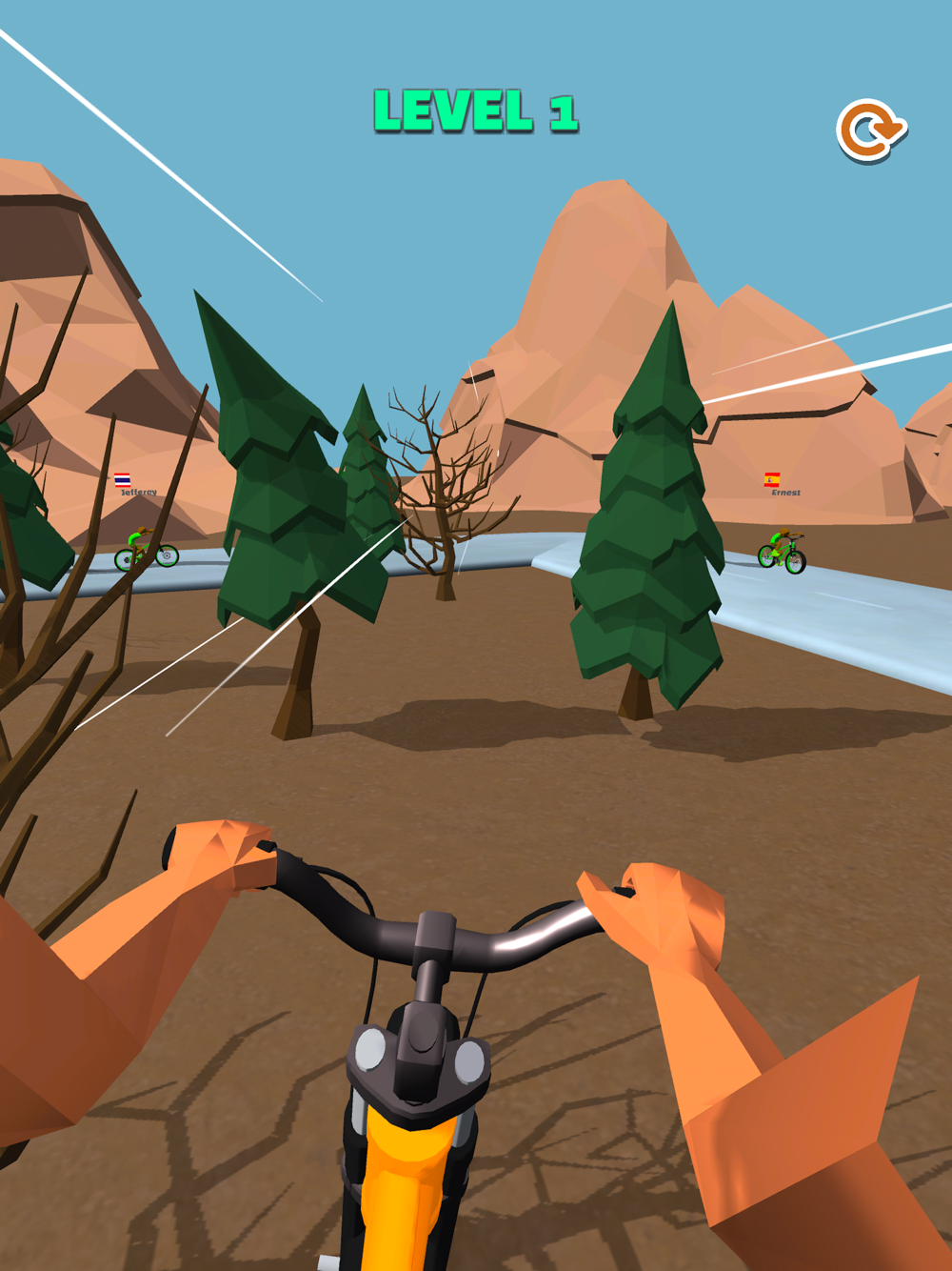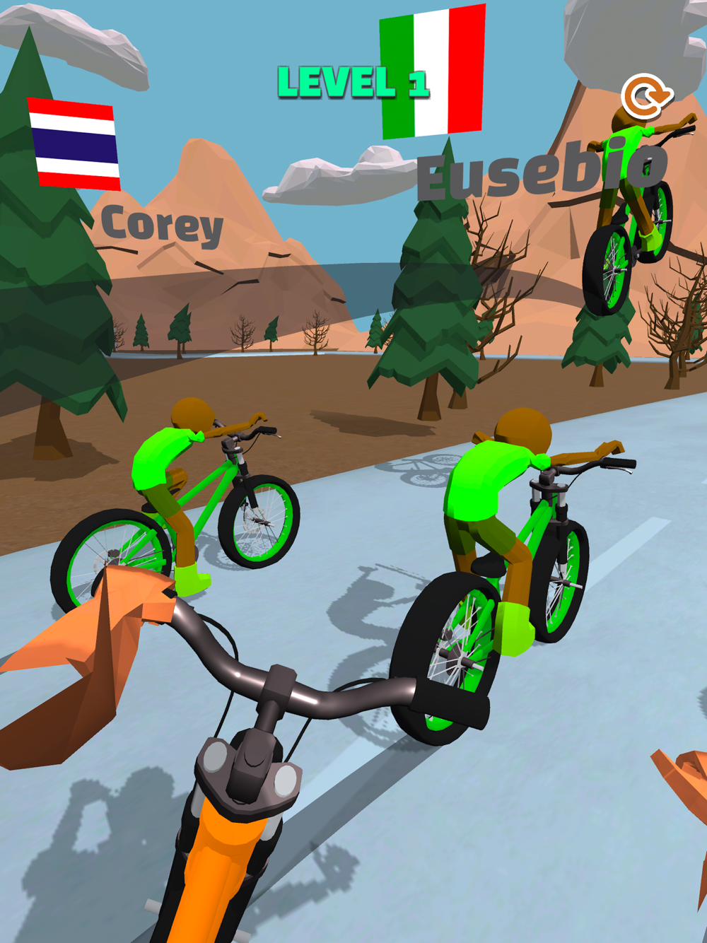 A thrilling race! Grab the steering rod and make your way through breathtaking environments! Make sure to use the ramps to get to the end and beat your opponents!