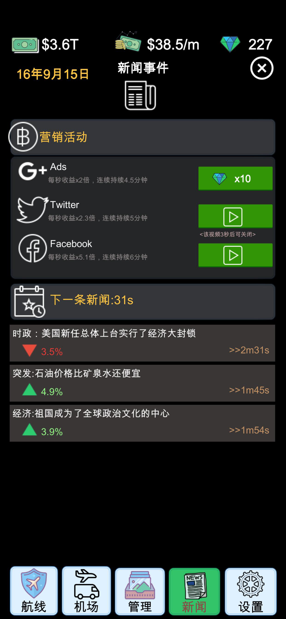 3、文字剧情设定自由,每个玩家都能按自己的想法打造航空公司,做到业内第一!
