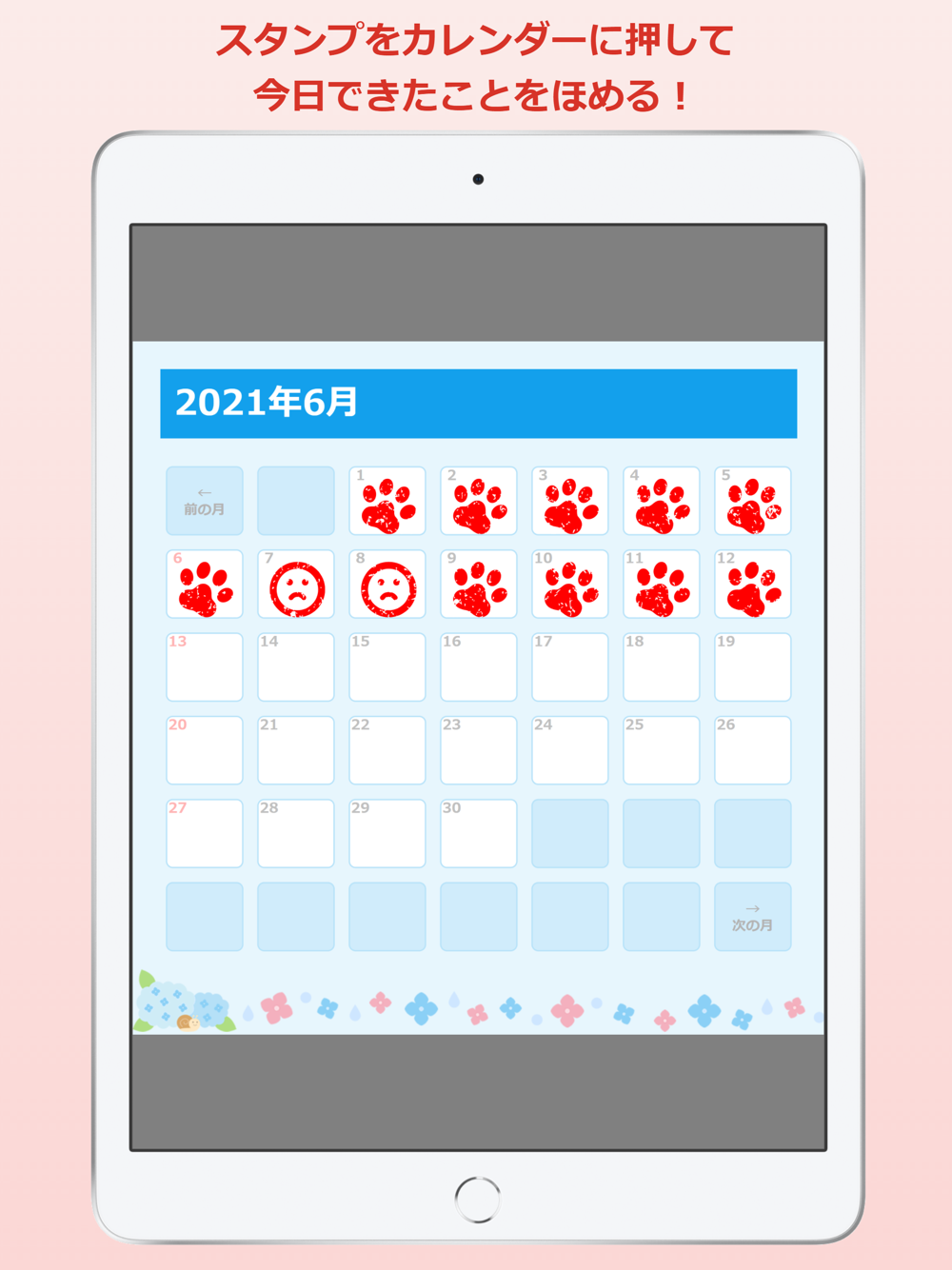カレンダーで見てほめるための、スタンプカードアプリです。