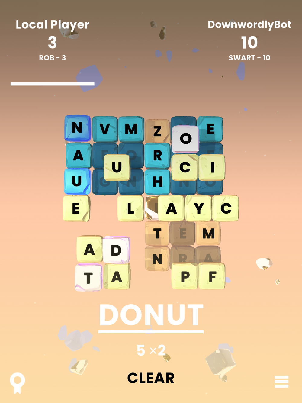 Downwordly is a word building game that challenges you to make the most out of the letters you have. Not all letters you see are playable! Use your intellect to find the best word you can make while also planning for the future.