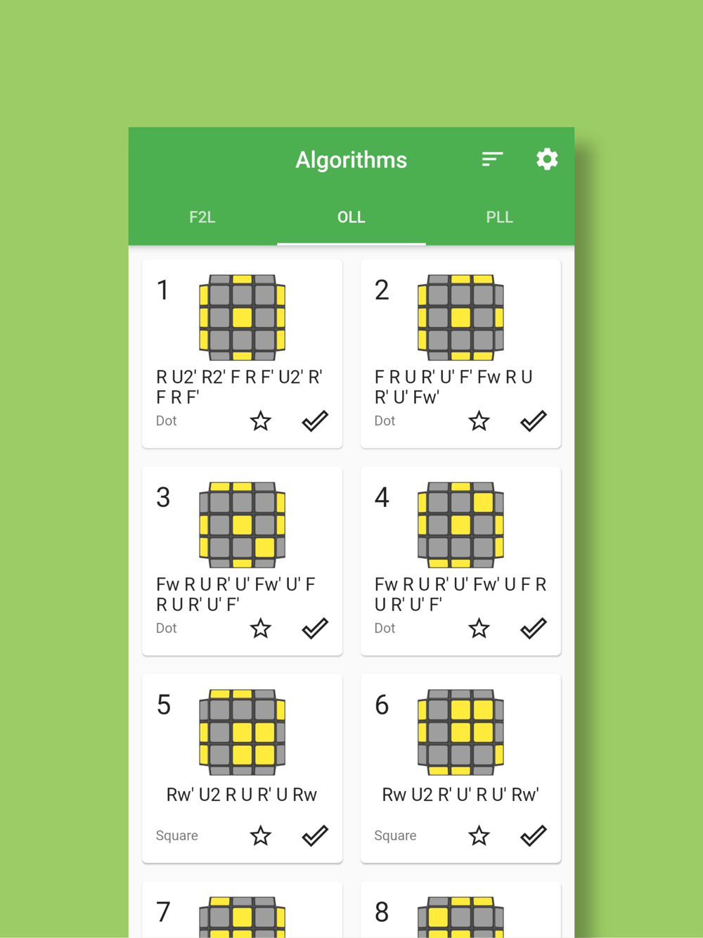 In this app, you can see the list of F2L, OLL and PLL methods of CFOP method, which is the solution of Rubik's Cube and SpeedCube.