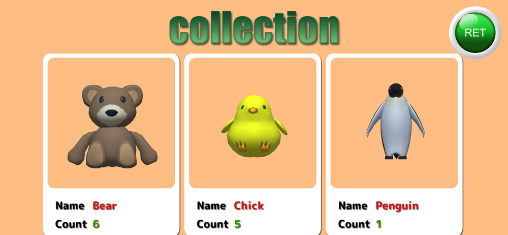 You can't get a real stuffed toy, but We tried to reproduce the atmosphere of a real claw machine game as much as possible.