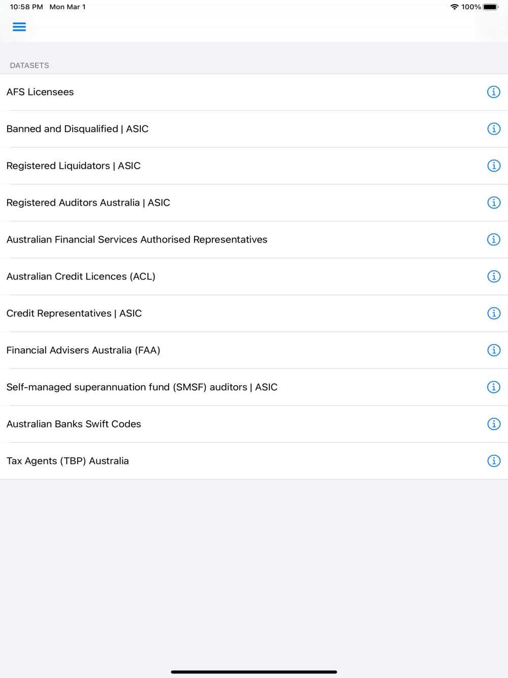 All the financial services of Australia in one place. The program will allow you to check if they have a license AFS, to find the nearest Financial Adviser (FAA) or Tax Agent (TBP).
