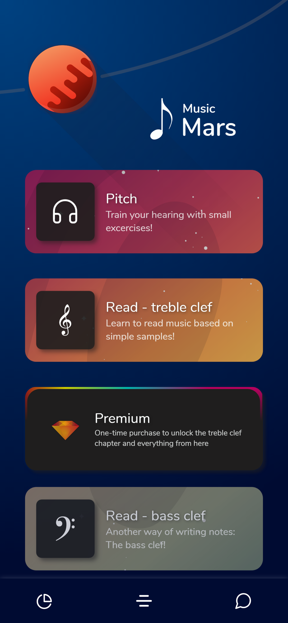 Learn important musical concepts in a fun way! This app teaches you in > 100 levels. Save mars by deflecting meteorites from it!