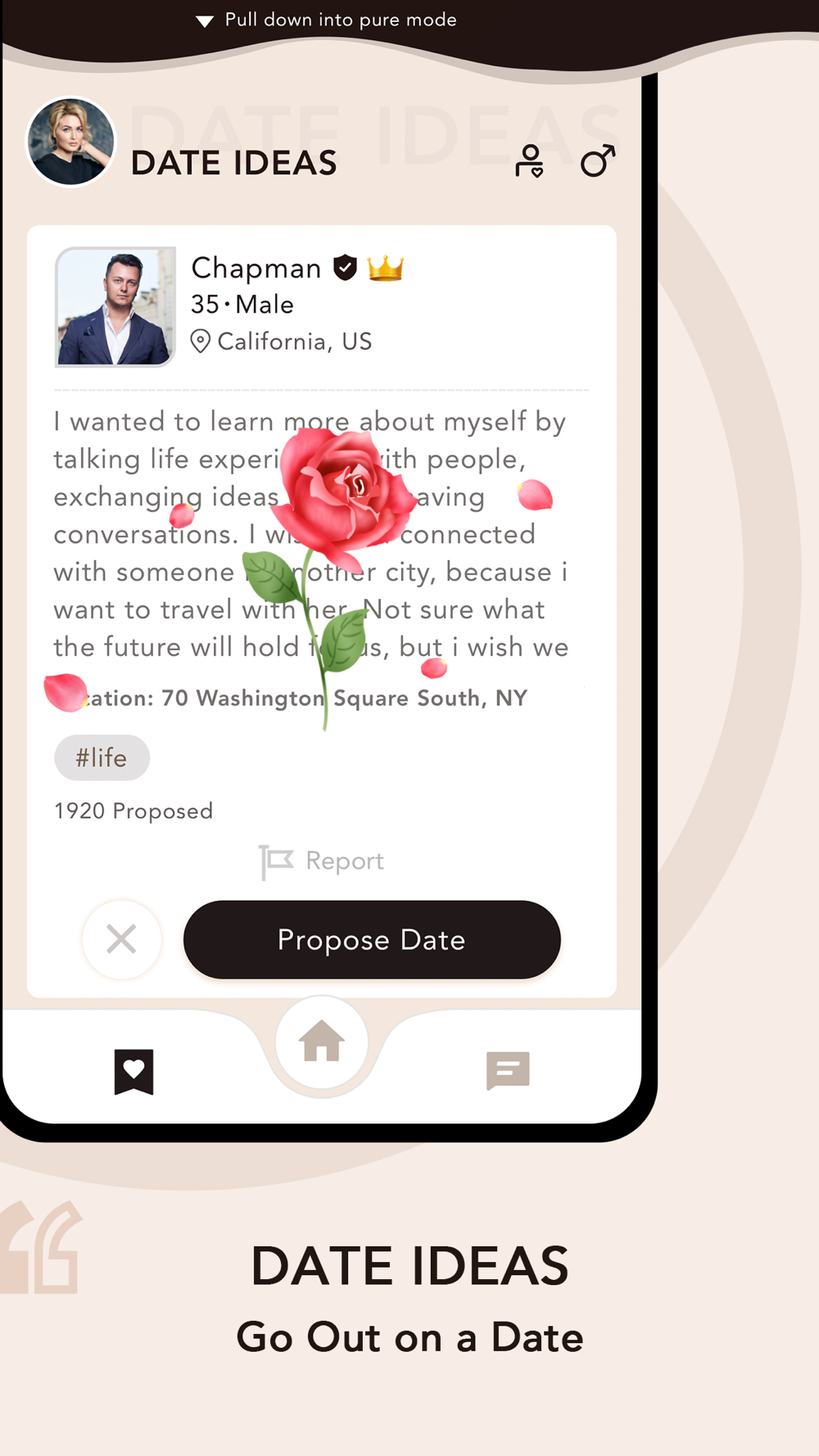 Read original interesting date ideas from your potential matches. No idea attracts you? Propose your own special ideas!