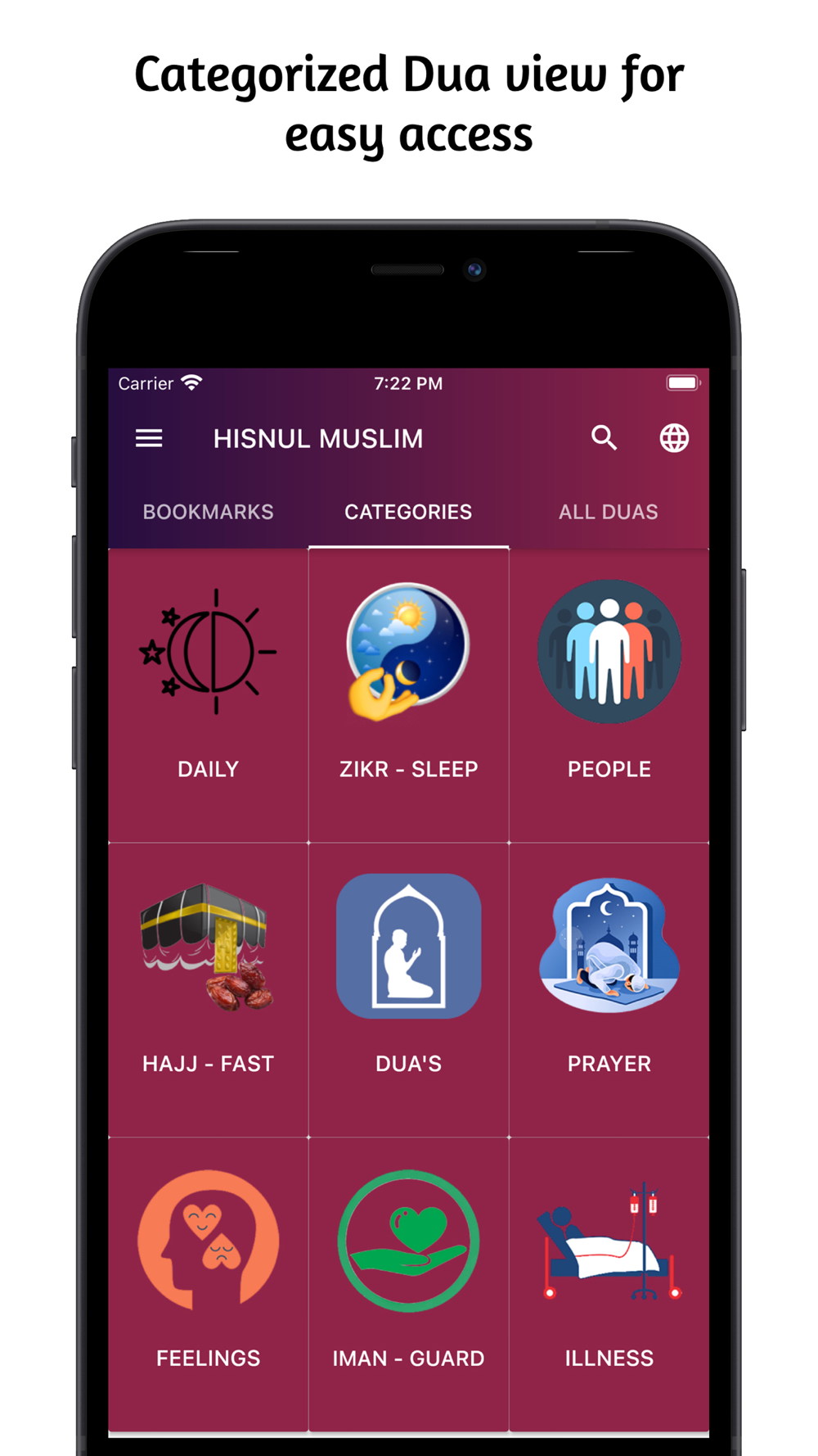 Some of the Dua's and Adhkar topics in the app - when waking up, when wearing and undressing, entering and leaving the toilet, performing ablution and prayer, going to the mosque, seeking guidance in making a decision, morning and evening Dua's & Adhkar, and a lot more.