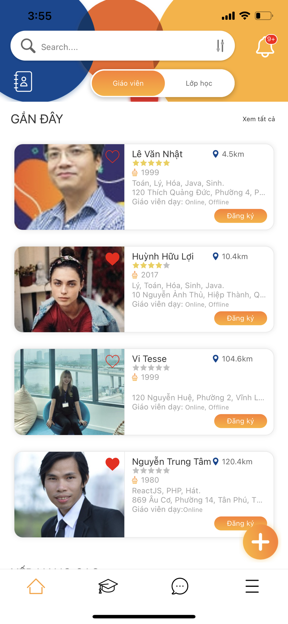 - Tìm kiếm gia sư và các lớp học nhanh chóng