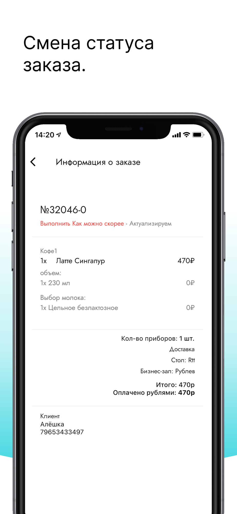 Приложение помогает ресторану управлять заказами: принимать, готовить и отдавать их вовремя.