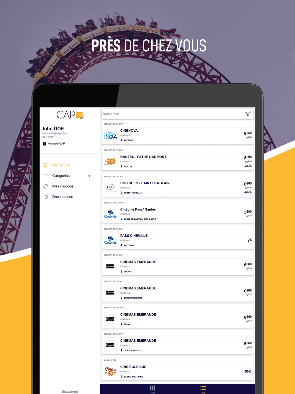 CAP, une billetterie 100% nationale, du pouvoir d'achat grâce à mon CSE.