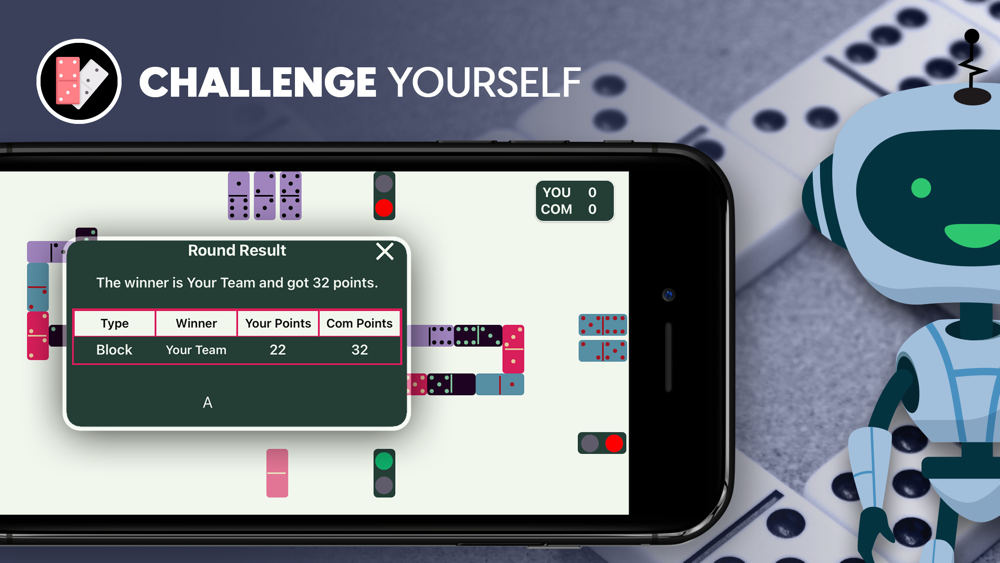 choose your favorite domino tiles, you can change the theme of playing from wide range of light and dark themes, also you can choose multi colour theme which allow you to track the source of tiles.