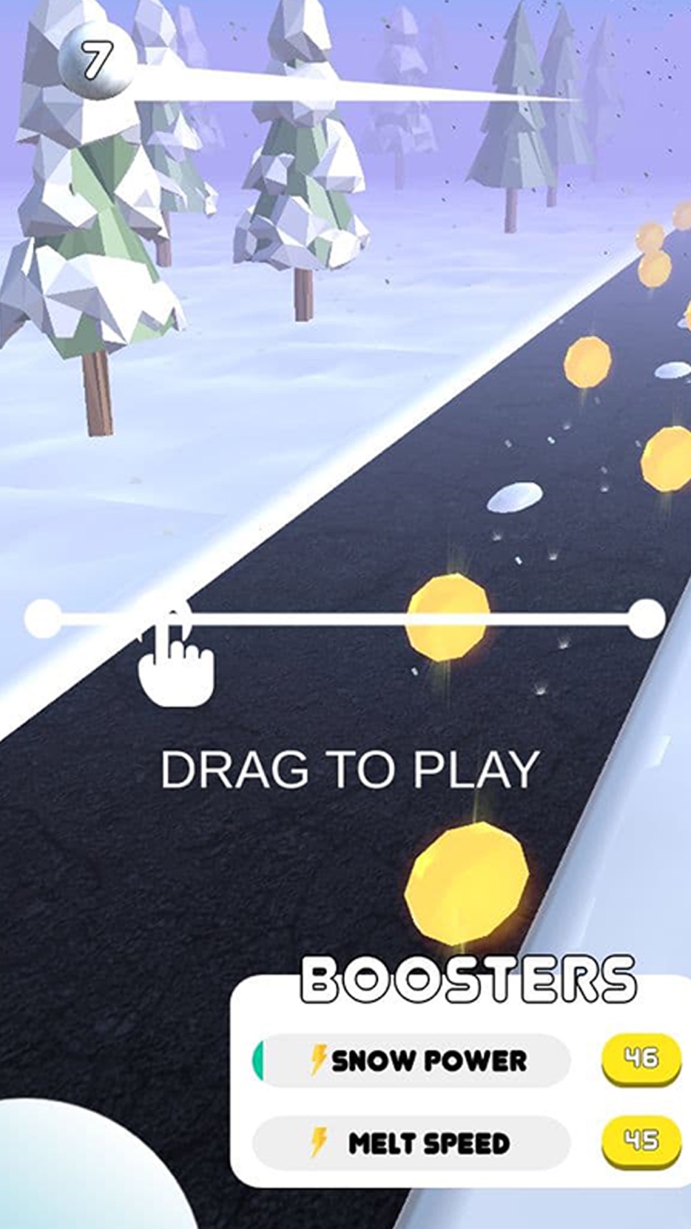 Snowball is a game in which you have to increase the layer of snow in order to make a snowman at the finish line.