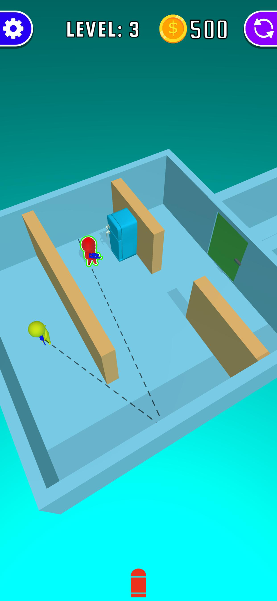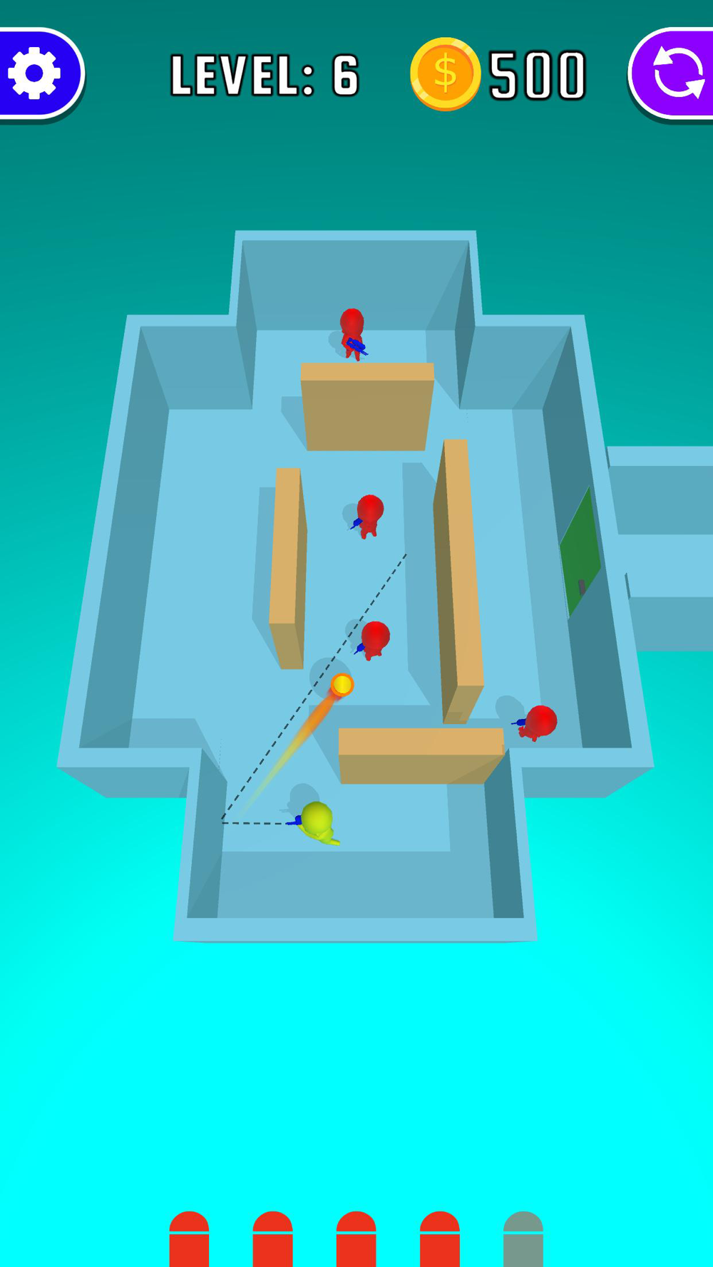 to escape the labyrinth guarded by the enemies you must kill them all. do not forget! You have to bounce the bullet off the wall to kill them. When they see you, it will be too late.
