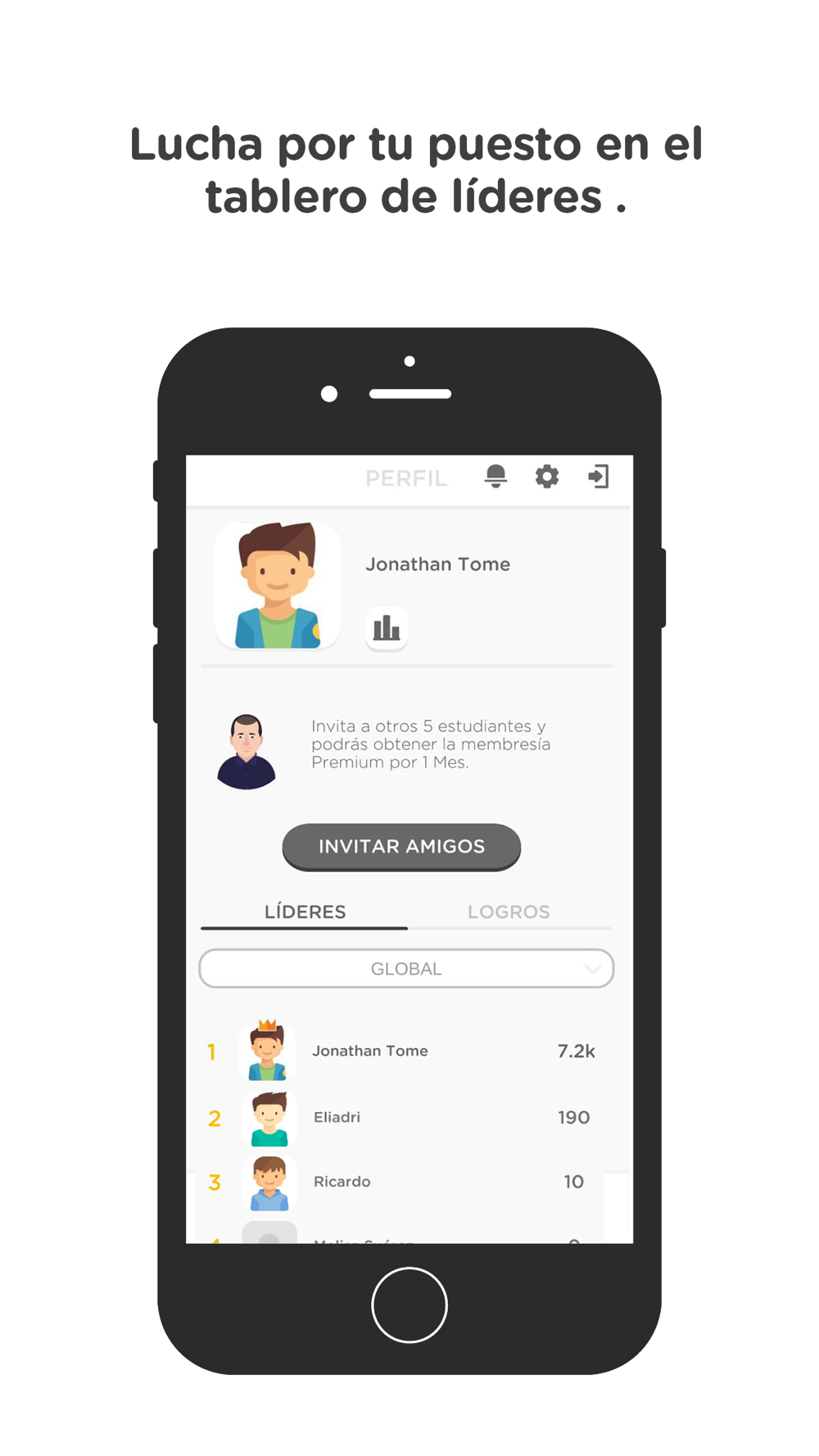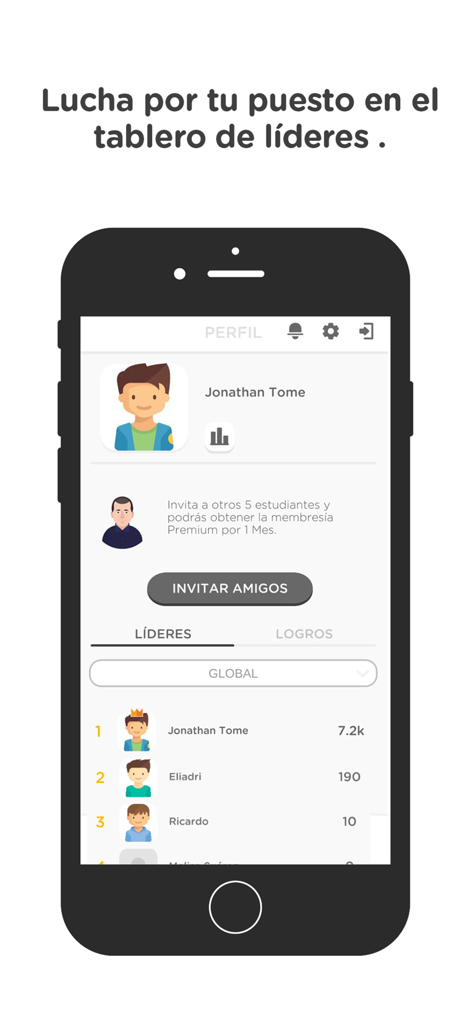 -Una tabla de posición donde veras tu nivel comparado con el de otros estudiantes