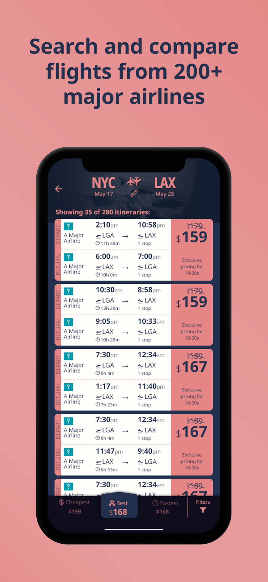 We’re the only flights and travel app that offers exclusive travel deals for post-grads and 20-somethings (or any traveler aged 18-30).