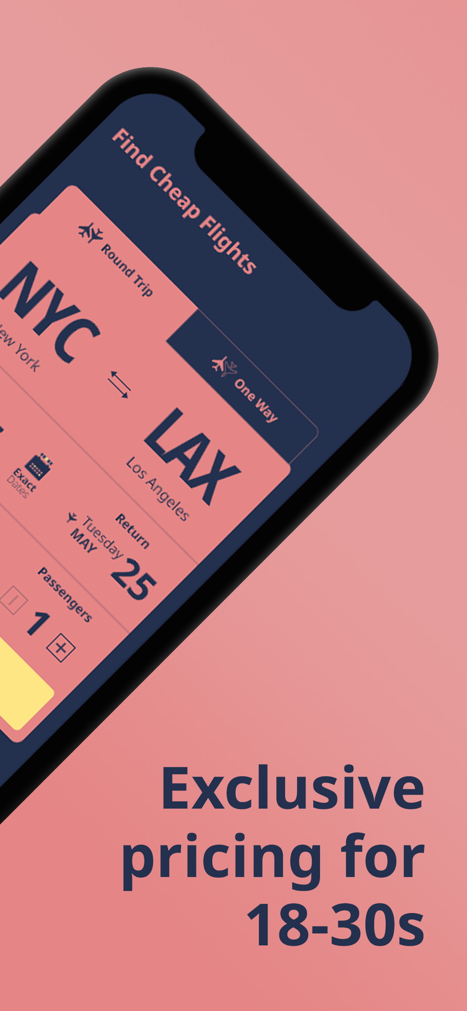 The world’s first travel booking app exclusively for 18-30 year olds—save up to 30% off flights! If your bank account’s looking as empty as your DMs, you don’t need to cancel those vacay plans—you just need to quit paying full price for airline tickets. Fortunately for you, discount flights start right here. Search, compare and book cheap flights and get exclusive discounts for travelers aged 18-30.