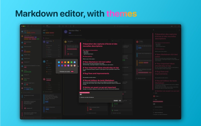 Jeff allows you to easily explore an idea using the Kanban method. Add a project, then use boards to describe its main sections.