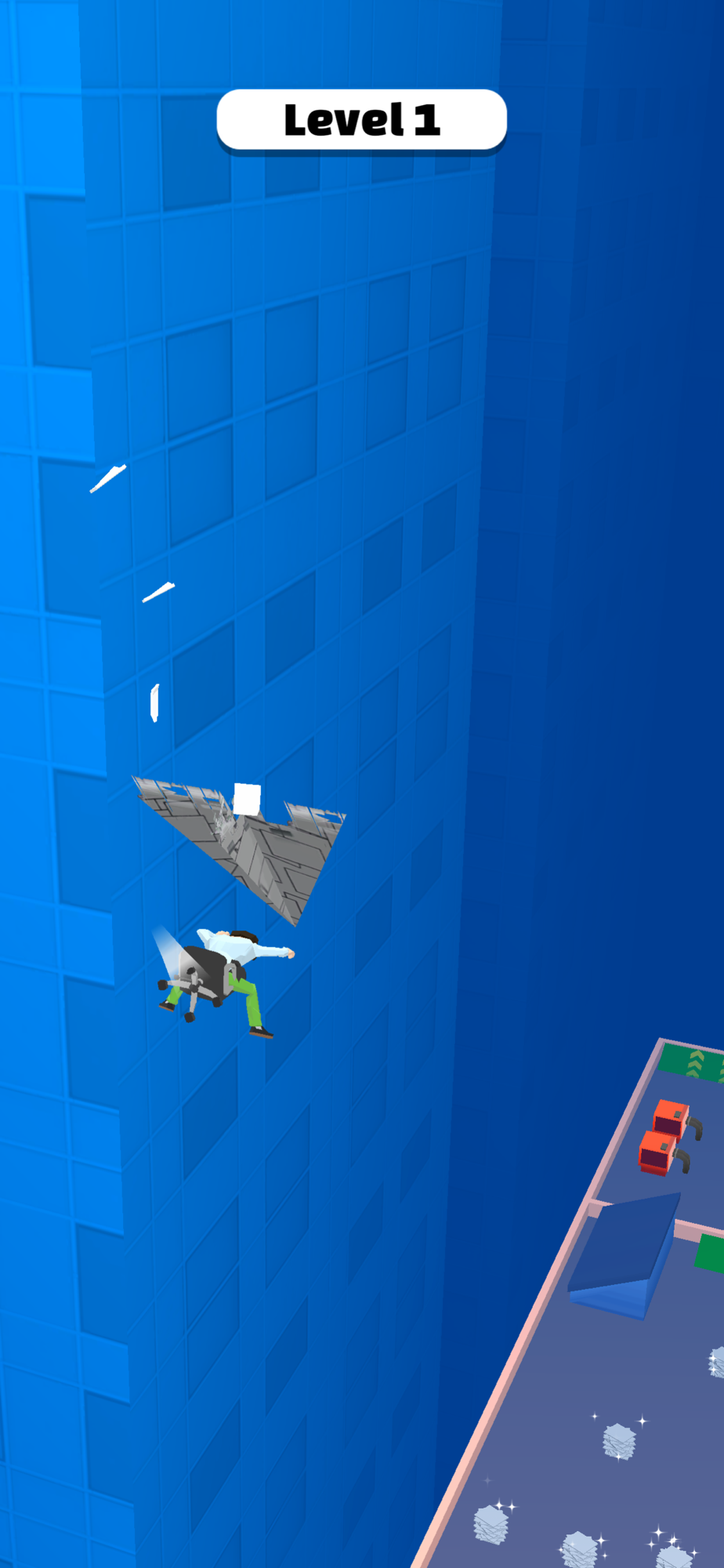 Then JUMP through the windows and assemble the biggest paper glider you possibly can! Fly through the city and avoid falling down as your glider dismantles right above you. The more papers you collect, the longer you’ll fly!