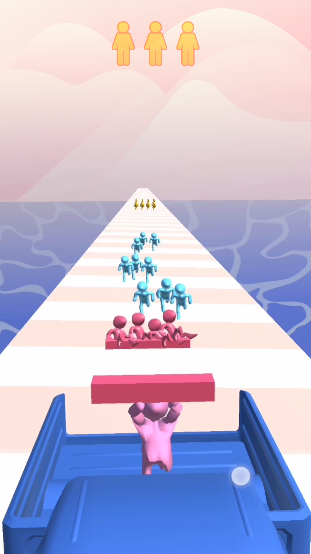 Tap and hold to grow the cube and throw at stickman running toward your way. They are trying to hold on to your truck and catch you so throw cubes and run away.