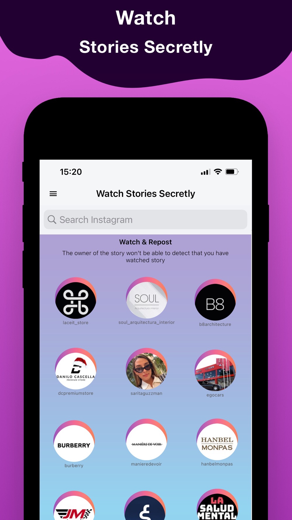 Now, you have access to all the necessary tools to analyze your Instagram account. With this new app you can analyze your account and see who is spying on you. You will also be able to check who sees your posts without following you.View and repost Instagram stories and photos too!