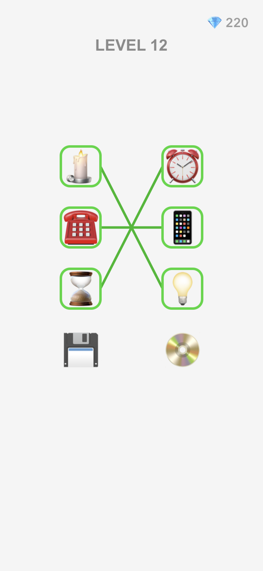 Connect emojis that have similar or related meanings with lines.