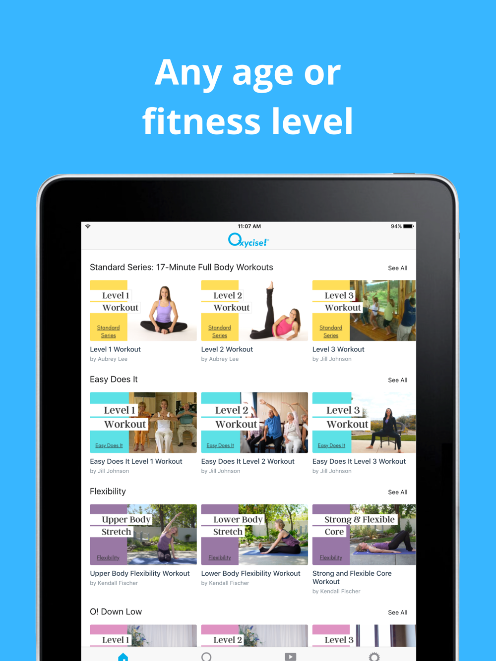 No equipment is needed, but feel free to add weights for extra strengthening and toning. Each workout combines the proven Oxycise! breathing technique with stretching and strengthening exercises to safely and effectively reduce stress, increase energy, and transform your body.