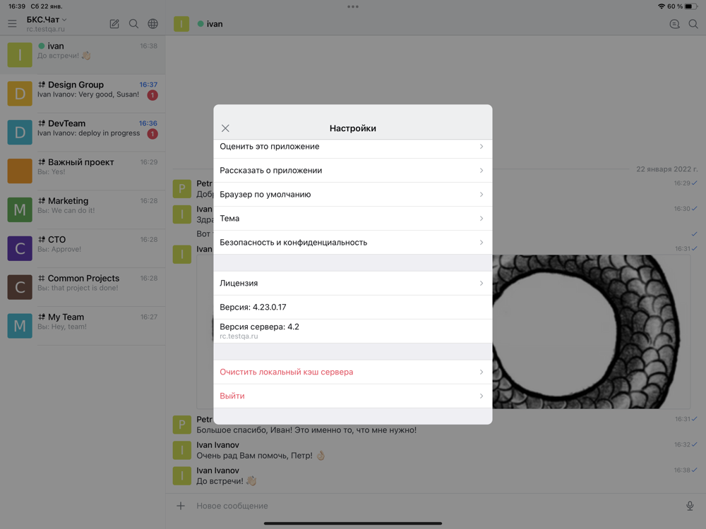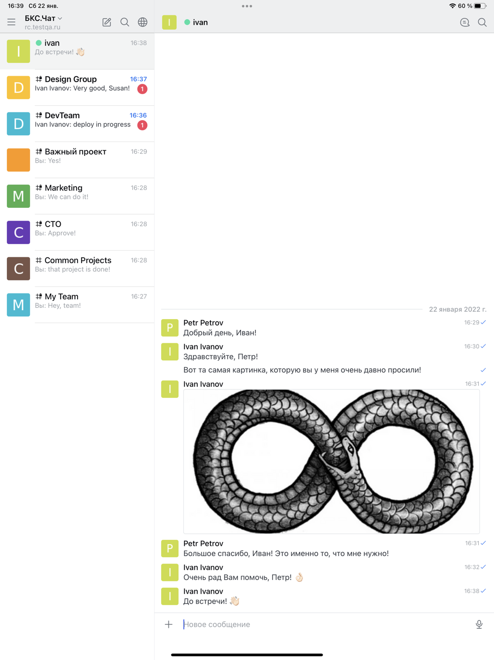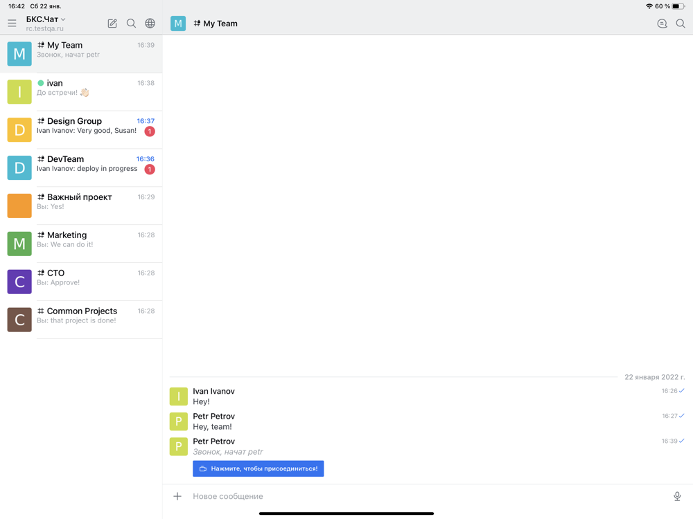 The app combines both instant messaging and audio/video calls. You can use it with public and private Rocket.Chat compatible services.