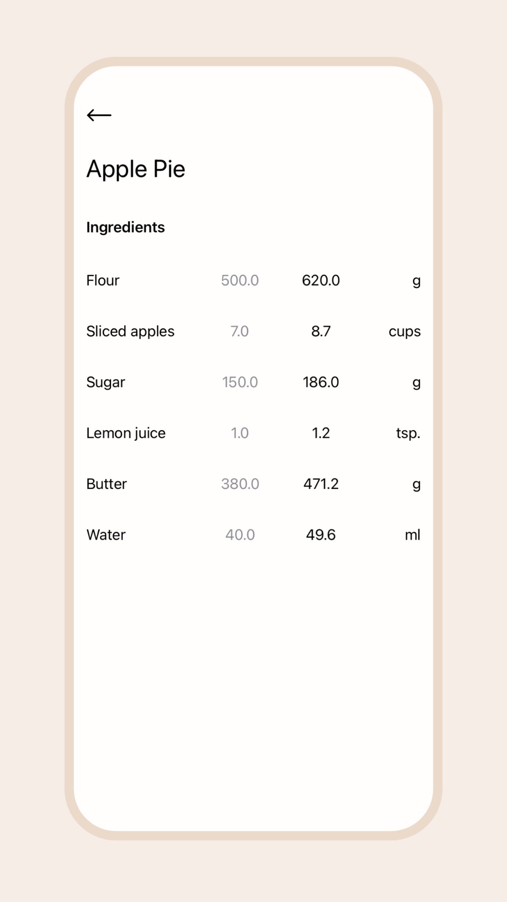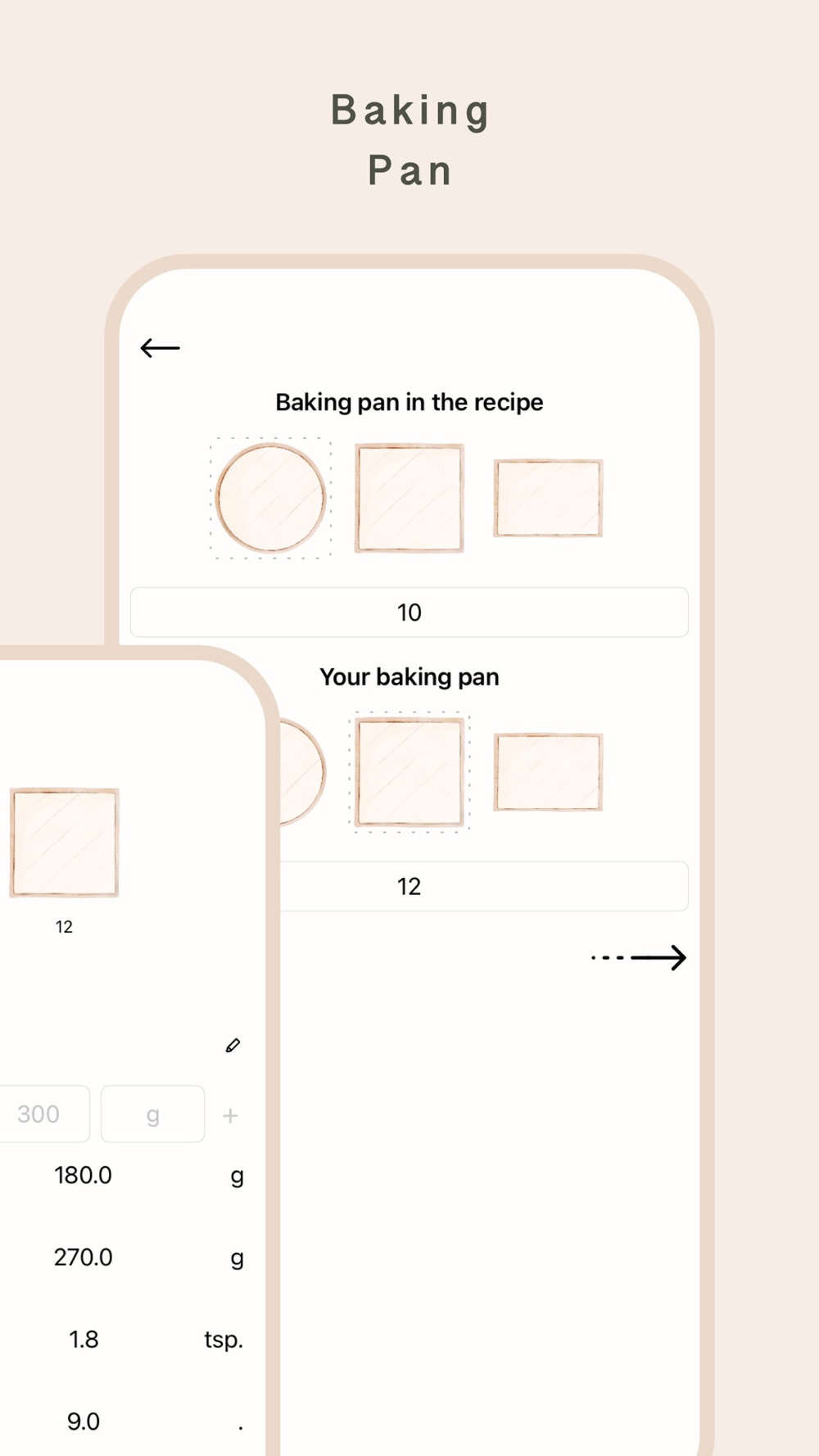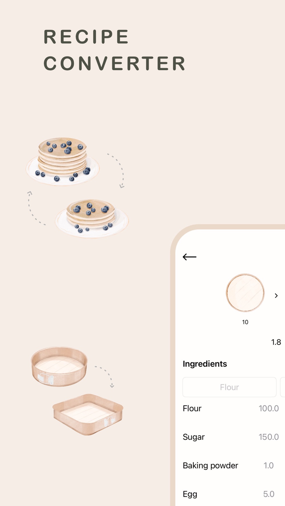 · Recalculates the ingredients for different baking pans.