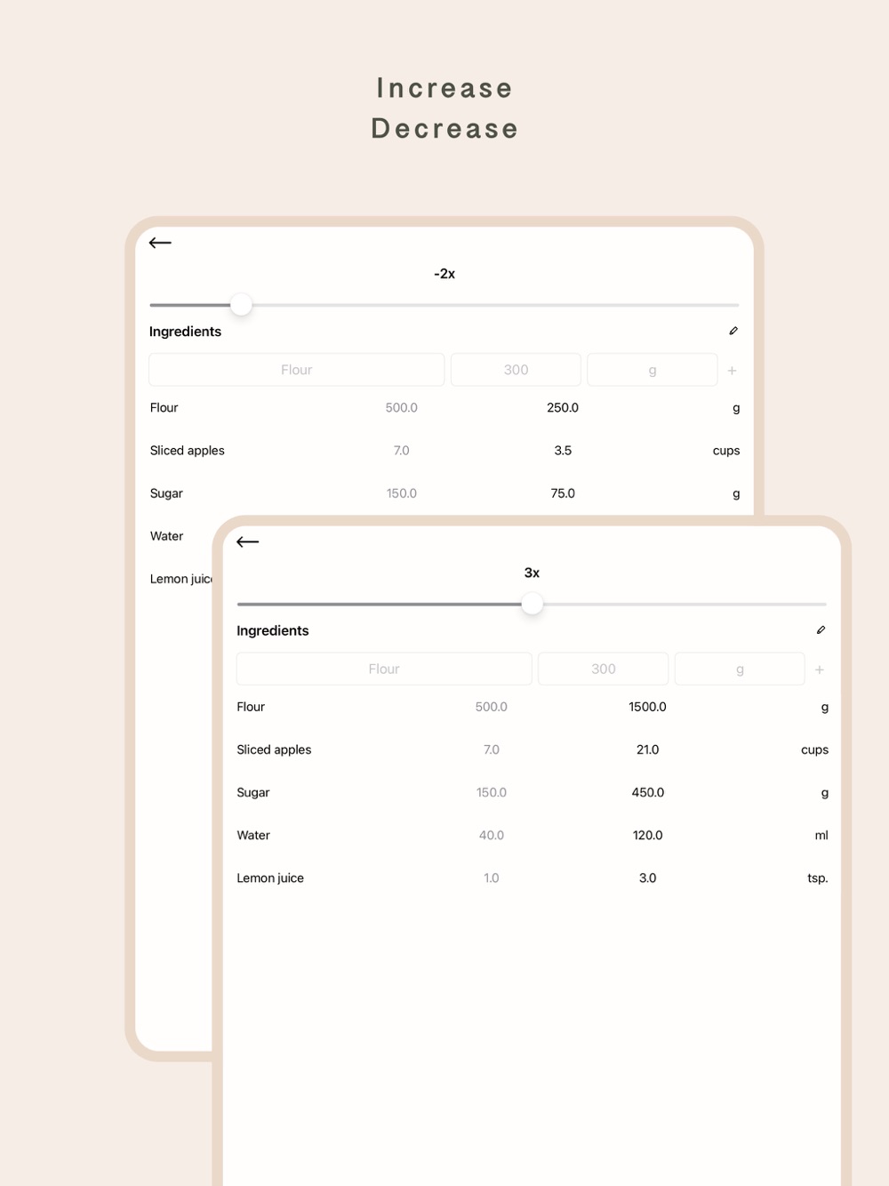 · Increase or decrease quantity of ingredients.