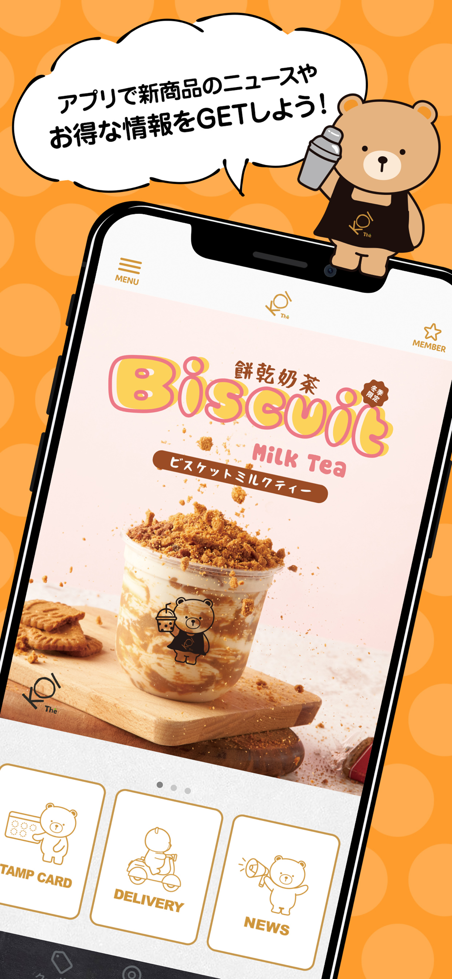 アプリでは新商品のニュースやお得な情報満載。デリバリーオーダーや店舗検索もできます。