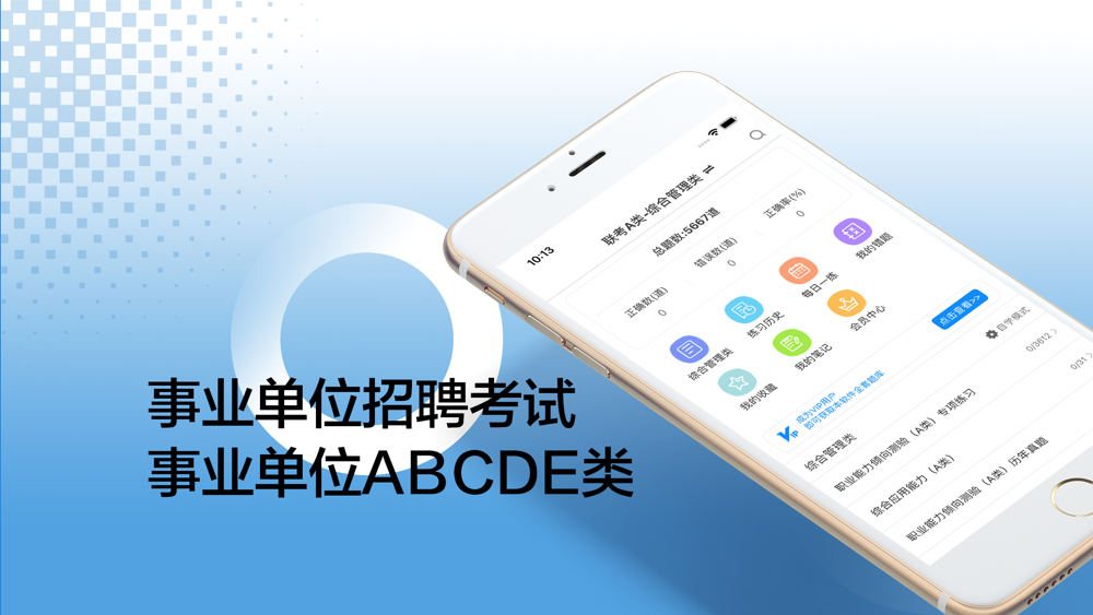 事业单位ABCDE考试题库,A类(综合管理类)、B类(社会科学专技类)、C类(自然科学专技类)、D类(中小学教师类)、E类(医疗卫生类),适合于2021(省、市、州、县、乡)事业单位公开招聘工作人员考试,为事业单位招聘考试量身打造;