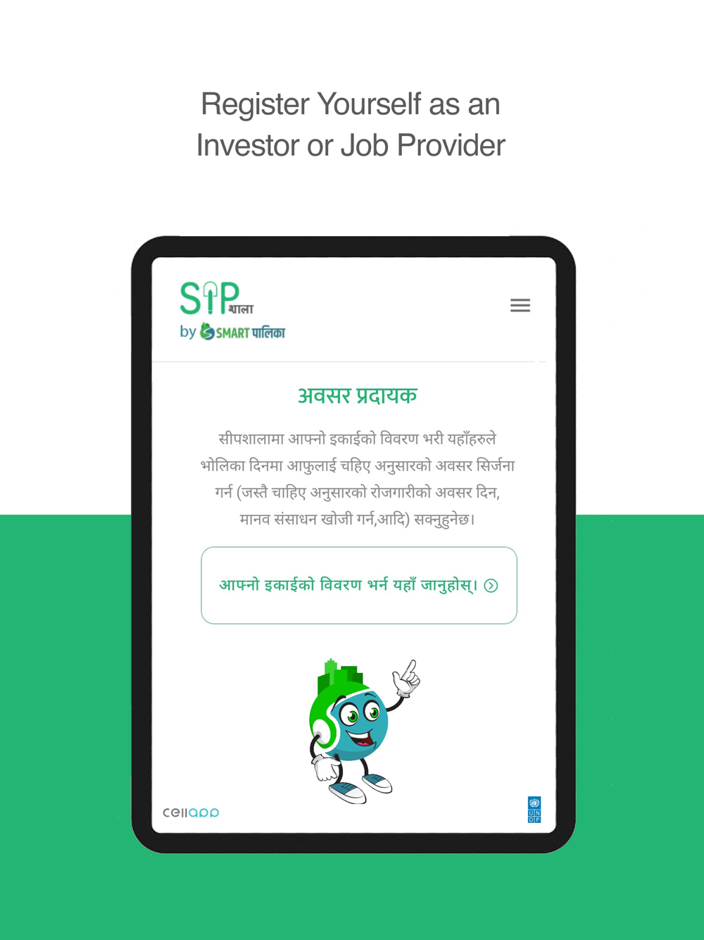 This application is intended for:1. Nepali Citizens all over the world who are unemployed or are looking after to start entrepreneurship. 2. Entrepreneurs in Nepal who are looking to collaborate with like-minded people. 3.Organizations in Nepal who are hiring Human Resources, Volunteers or conducting Vocational Trainings and Employment related activities. 4.Local Level departments who are working on Managing Jobs.