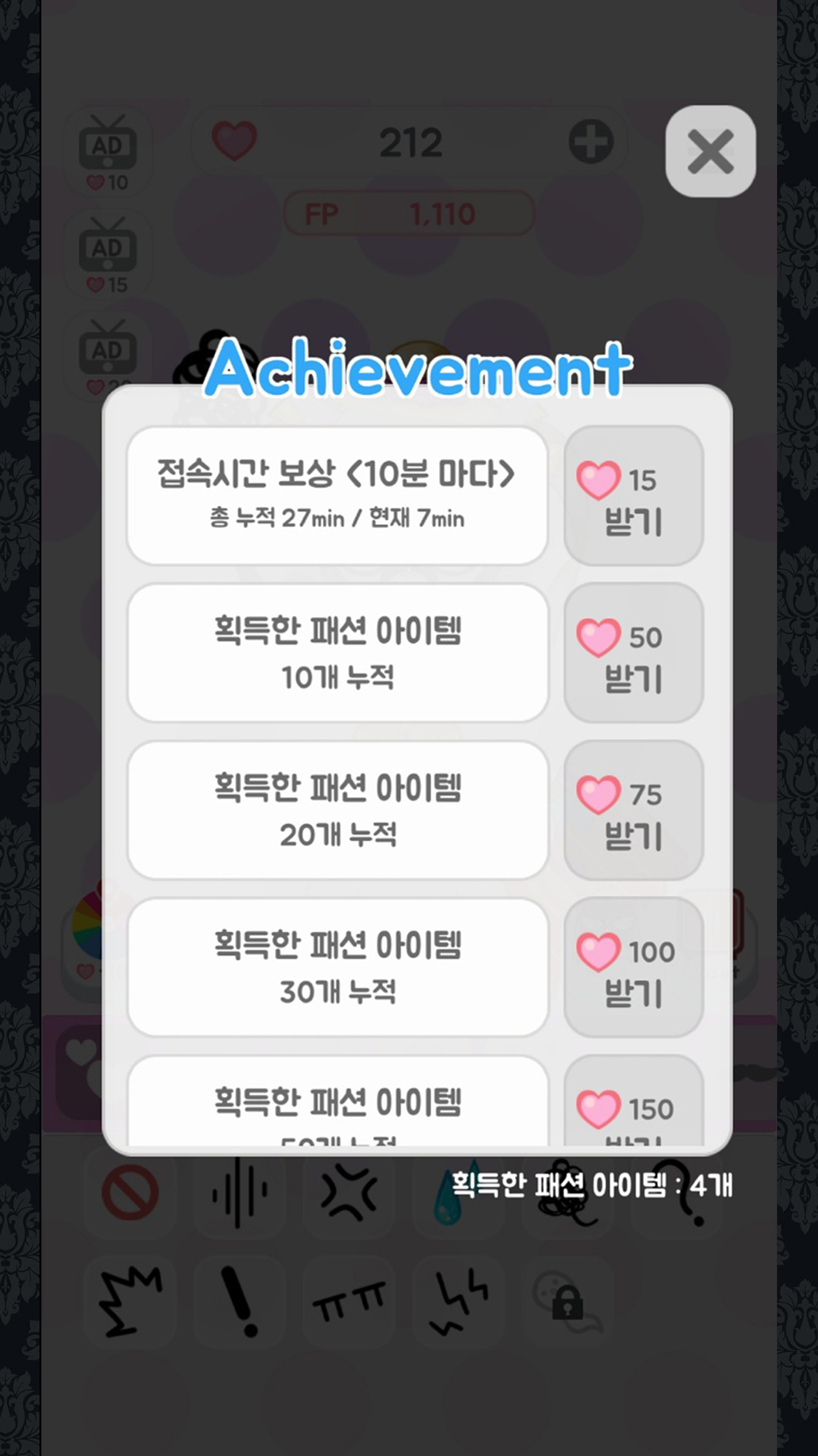 사용해보세요! 업적 퀘스트를 달성하면 하트를 받을 수도 있습니다!