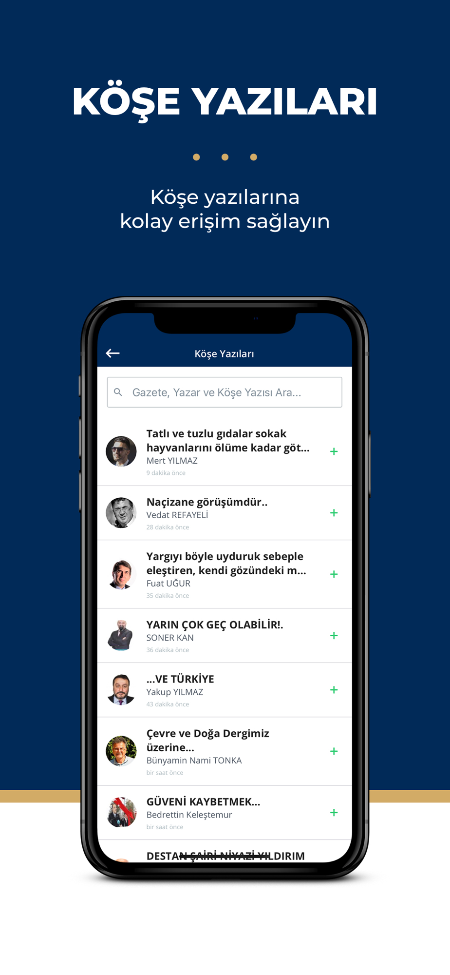 -Tüm köşe yazılarına kolaylıkla erişebilirsiniz.