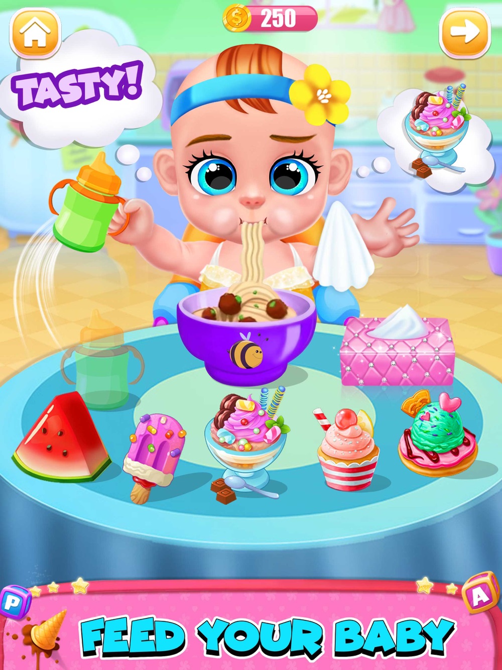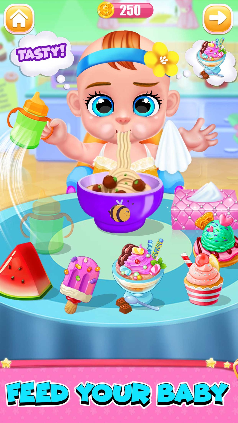 ここで甘い赤ん坊のゲームの本当の喜びが始まっています。さんがキュートな新生児ケアのあなたの次の義務を始めましょう。バースは、彼のために非常に重要です。彼のおむつや衣類を変更します。彼に食べて、私の新しい赤ちゃんと一緒にすべての瞬間を楽しむためにおいしい食べ物を与えます。