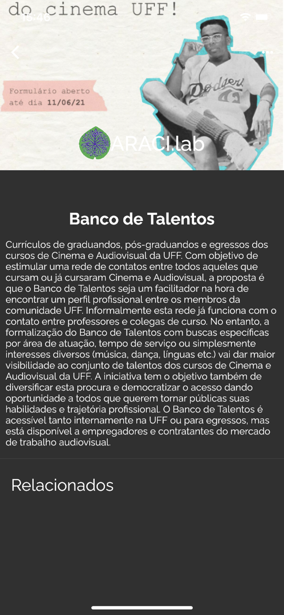 Com o aplicativo Araci.lab você poderá ficar atualizado com as produções e eventos mais recentes.